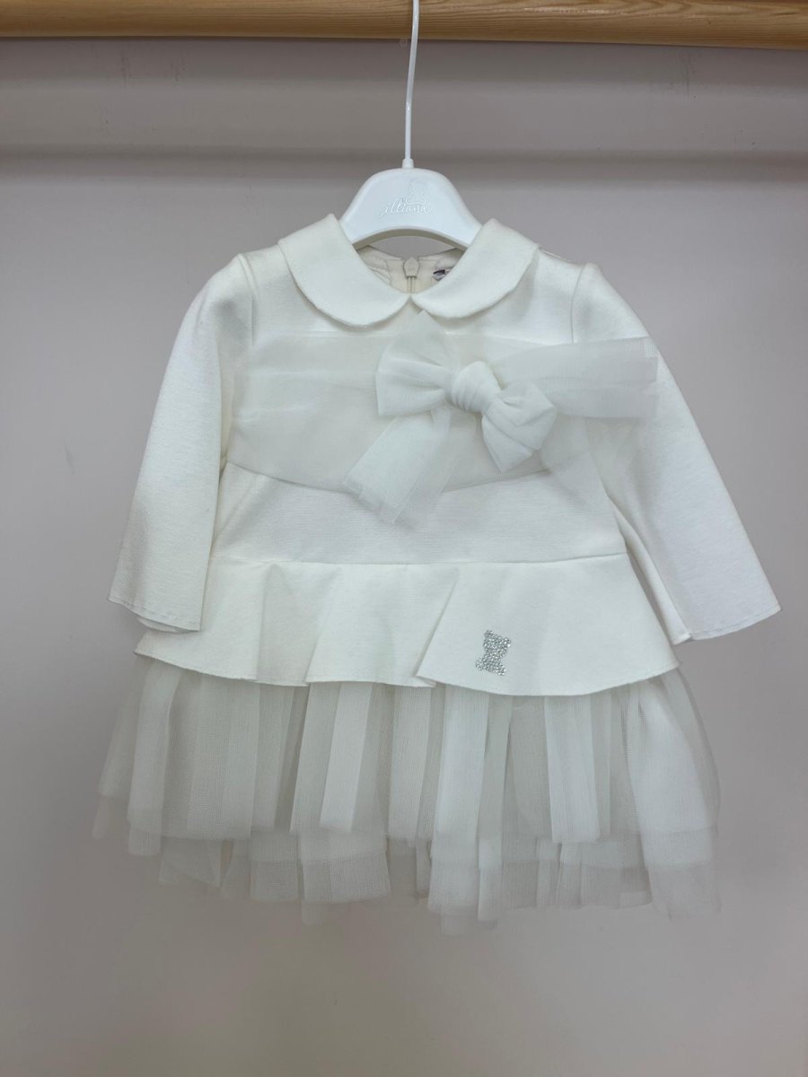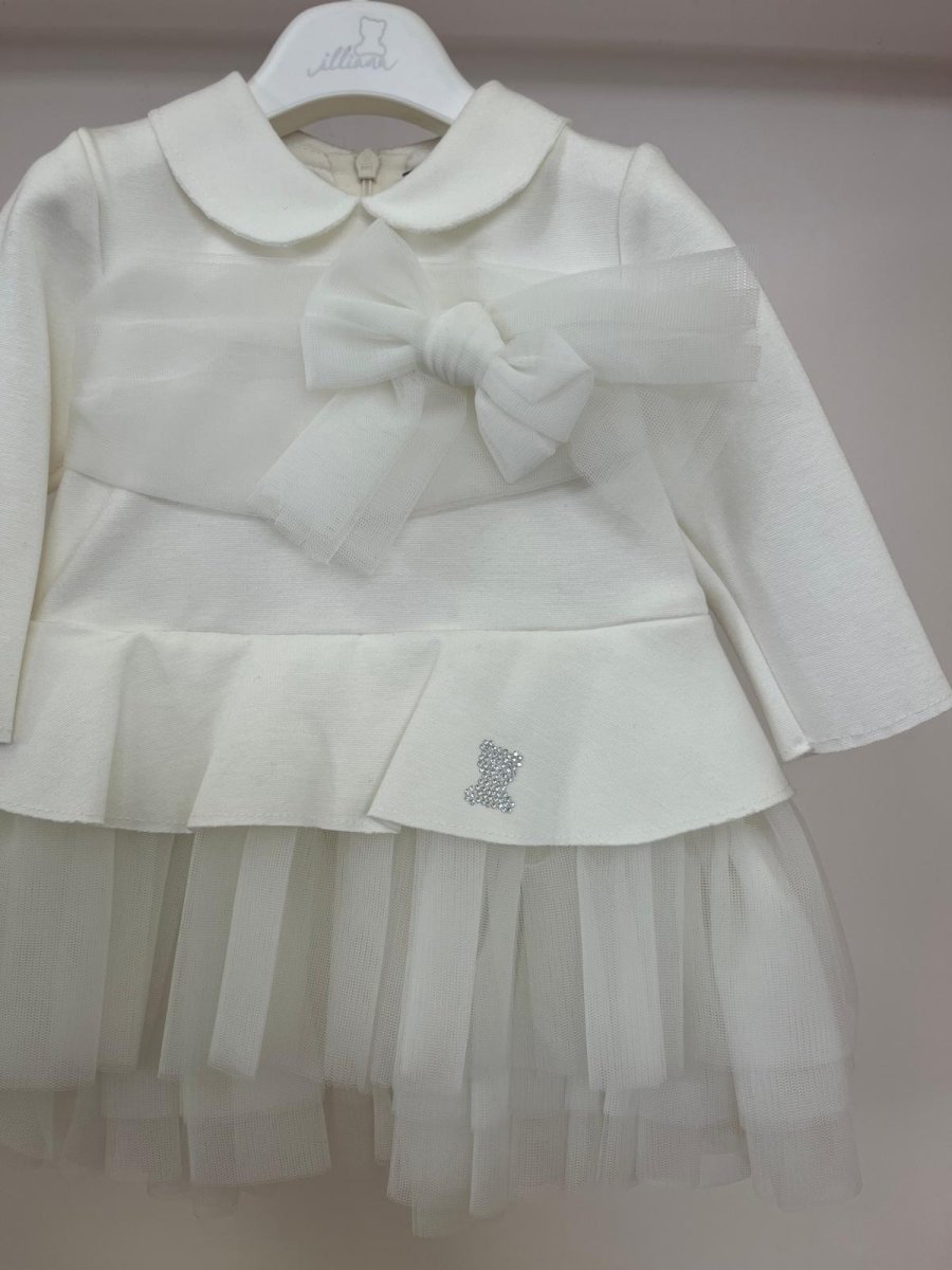 Abito bianco con tulle, colletto e con fiocco Illiana