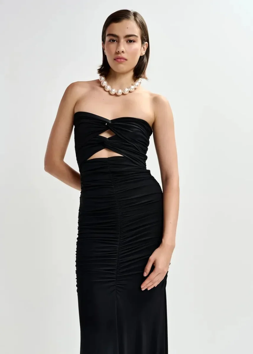 Abito Jeremy nero a sirena drappeggiato con dettagli cut out