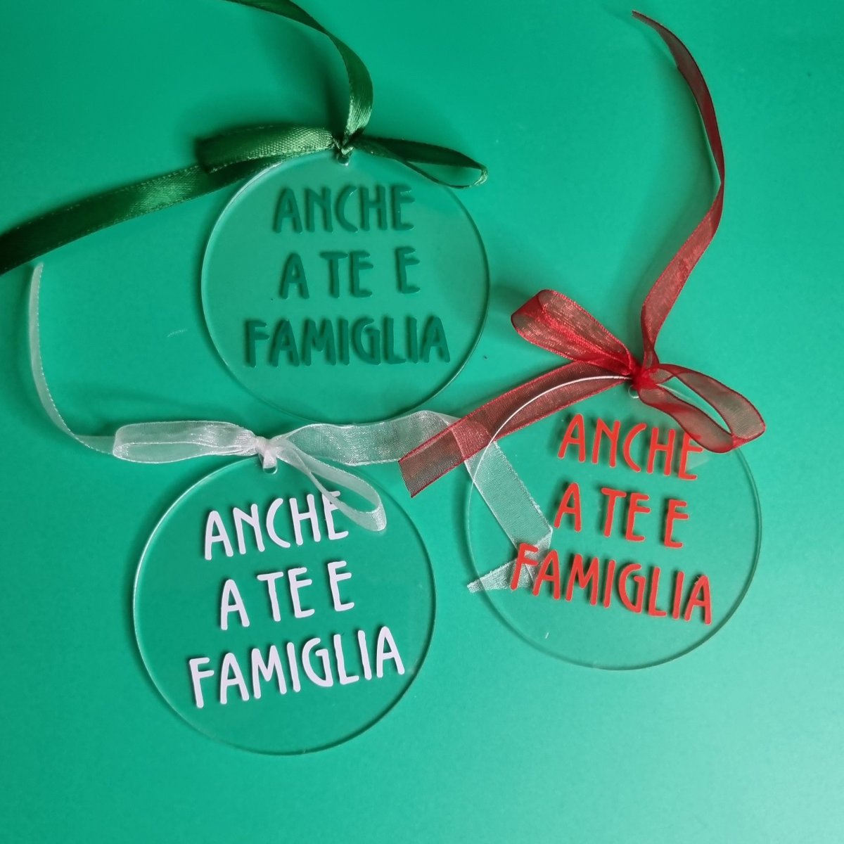 ADDOBBO NATALIZIO “Anche a te e famiglia” (diametro 7,5 cm)