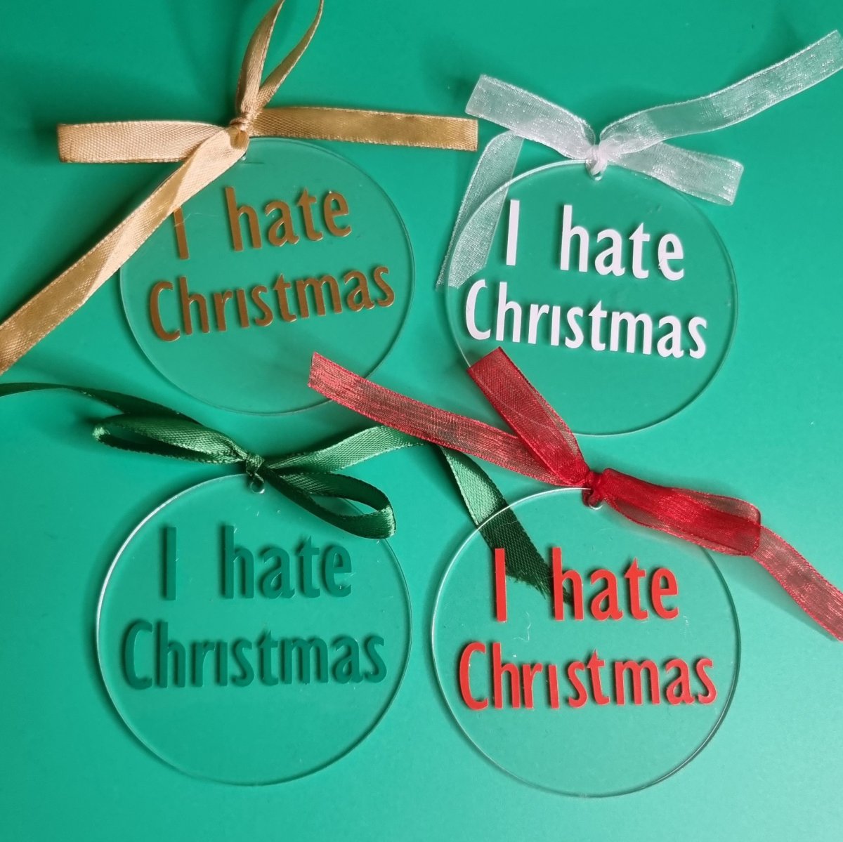 ADDOBBO NATALIZIO “I HATE CHRISTMAS” (diametro 7,5 cm)