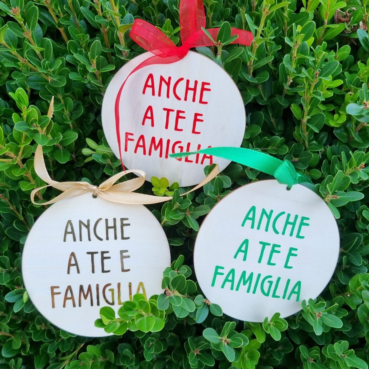 ADDOBBO NATALIZIO IN LEGNO “ANCHE A TE E FAMIGLIA”