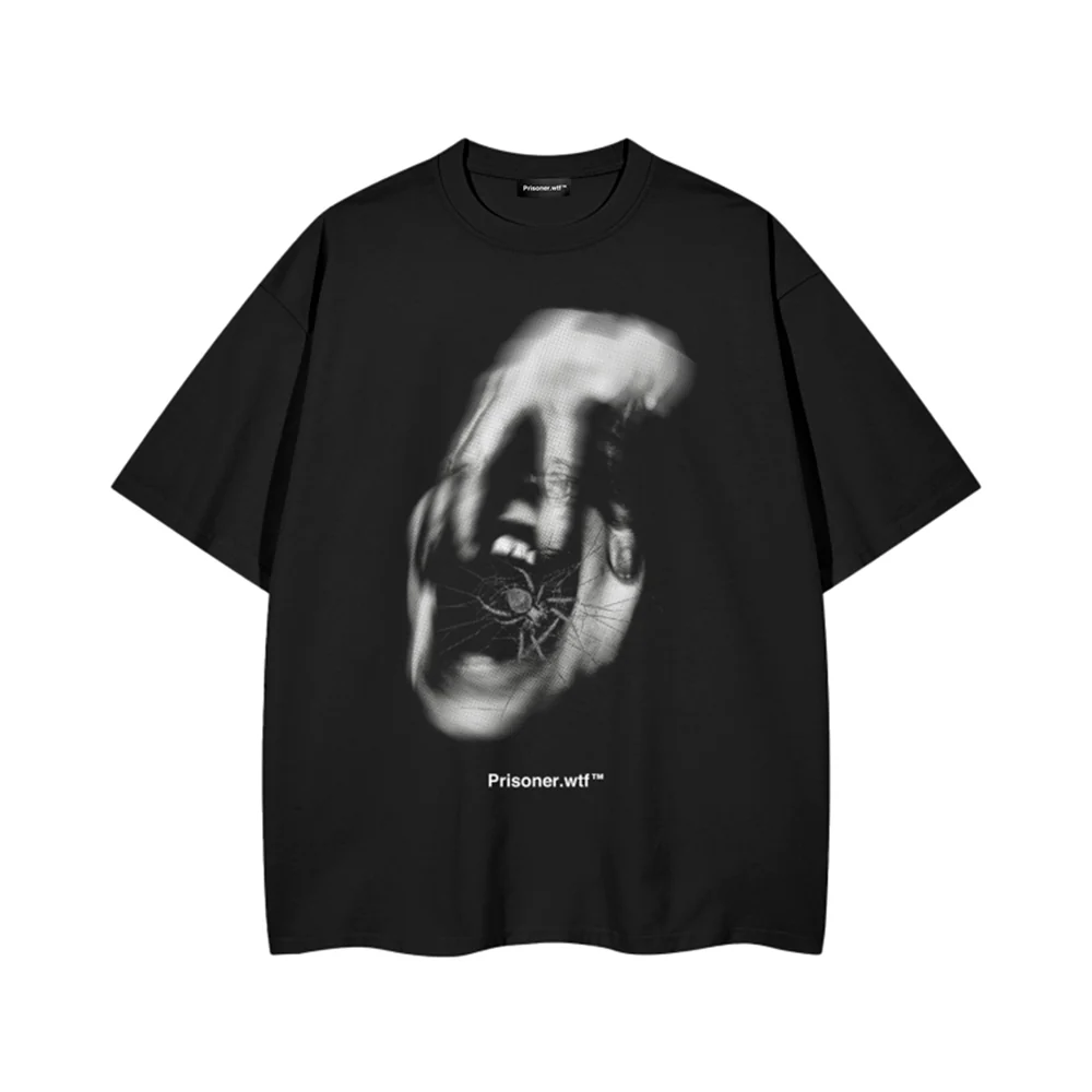 Elevate your fear factor with our Arachnophobia T-Shirt, a spine-chilling masterpiece for horror enthusiasts and spider lovers alike. This uniquely designed tee features a nightmarish scene of a spider weaving a web over an open mouth. Crafted with meticulous attention to detail, it boasts an oversized fit, made from thick and substantial 100% cotton fabric. Featuring dropped shoulders and a classic round neck, it’s the perfect choice for those seeking to make a statement that’s as bold as it is terrifying.