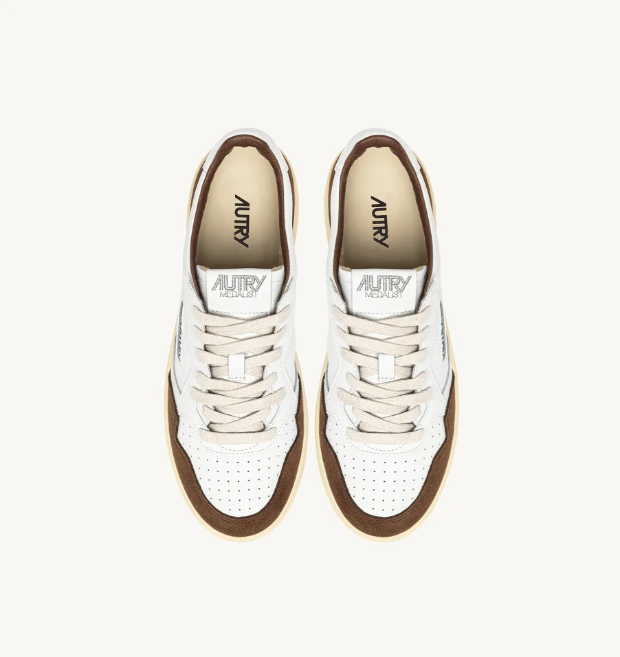 Autry medalist low in pelle bianco e suede marrone