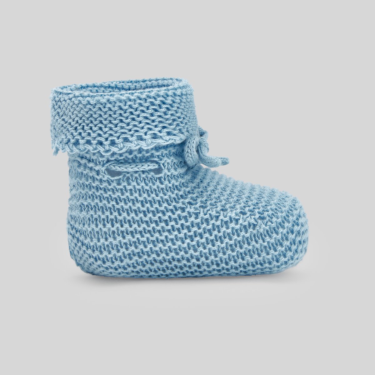 Babbucce in cotone organico colore blu denim con fiocchetto