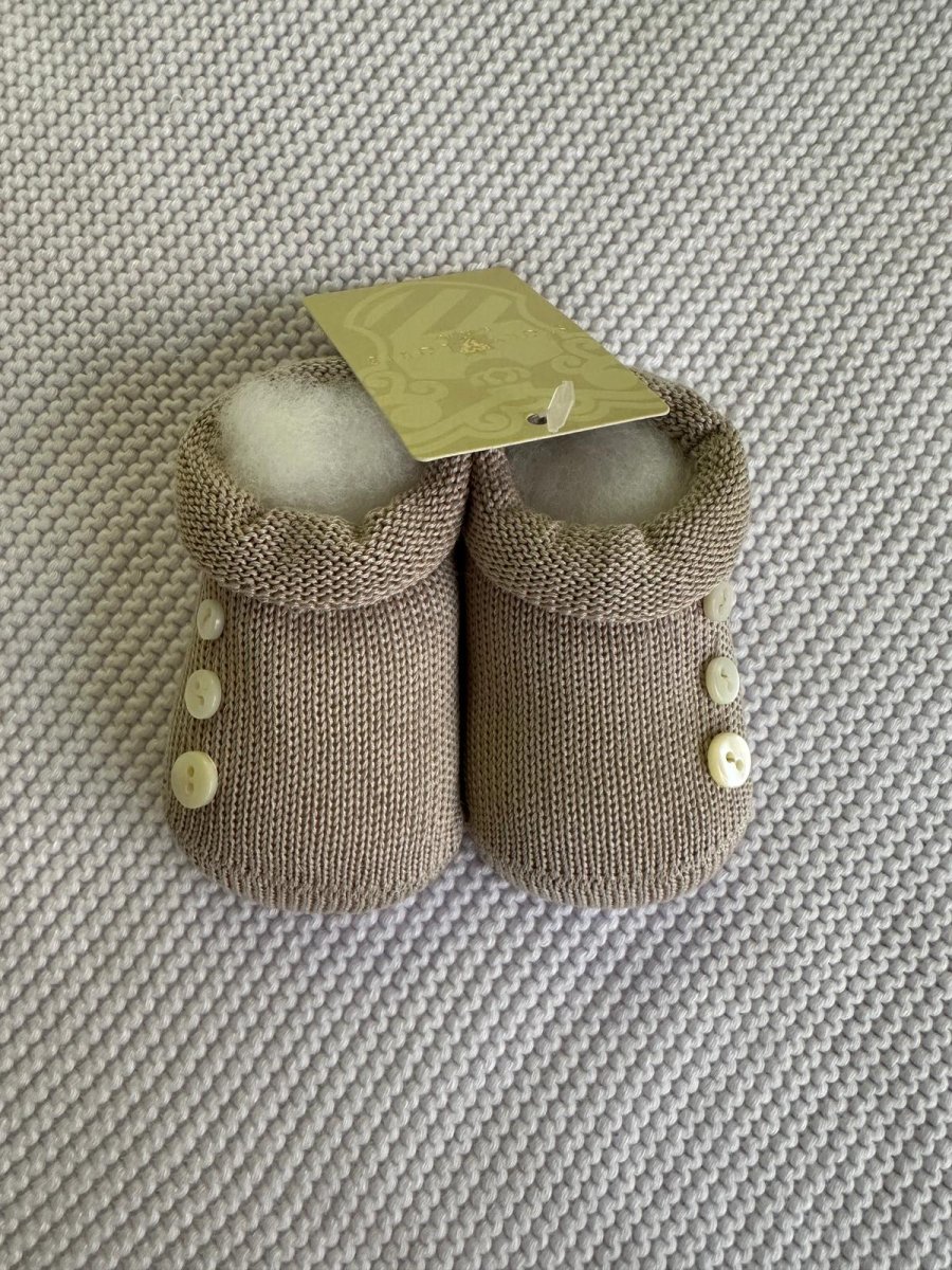 Babbucce in filo di scozia color tortora con applicazione bottoncini