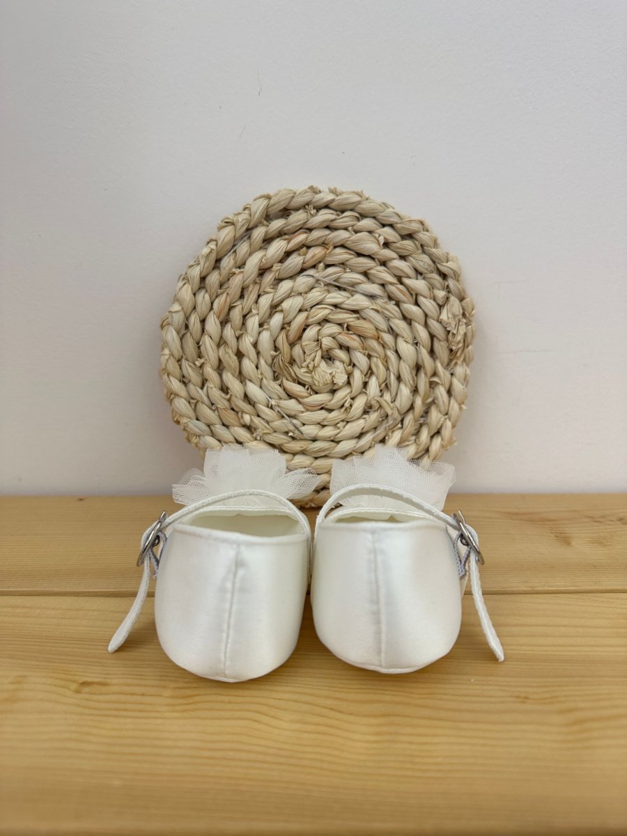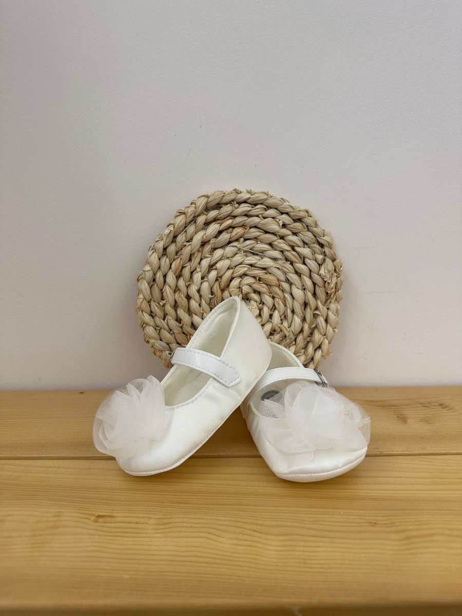 Ballerina panna, con fiore in tulle applicato, abbottonatura regolabile