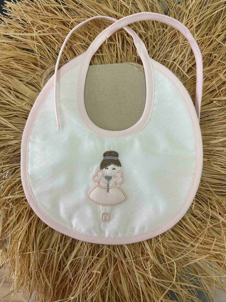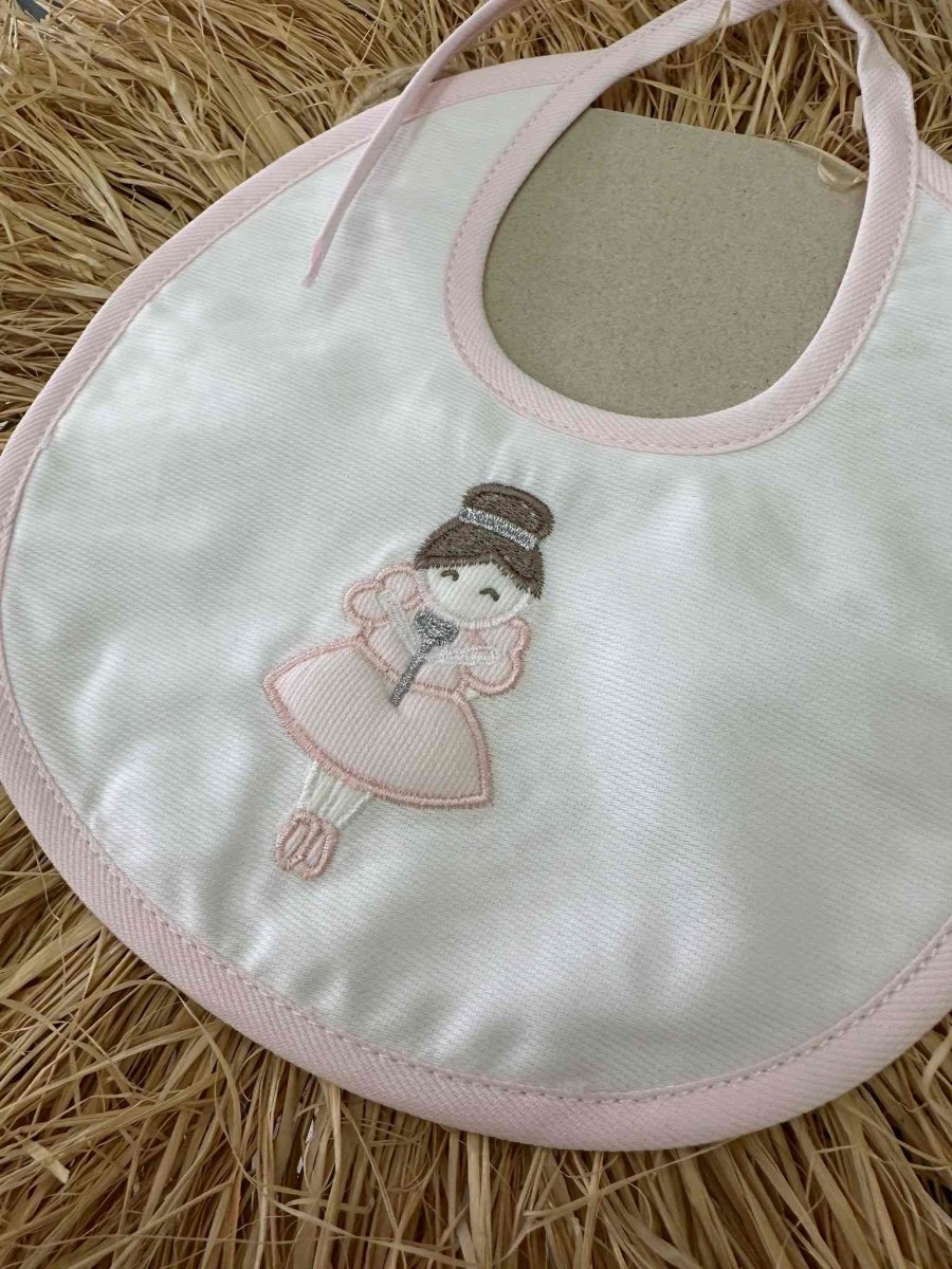 Bavetta in cotone colore bianco con ricamo ballerina rosa