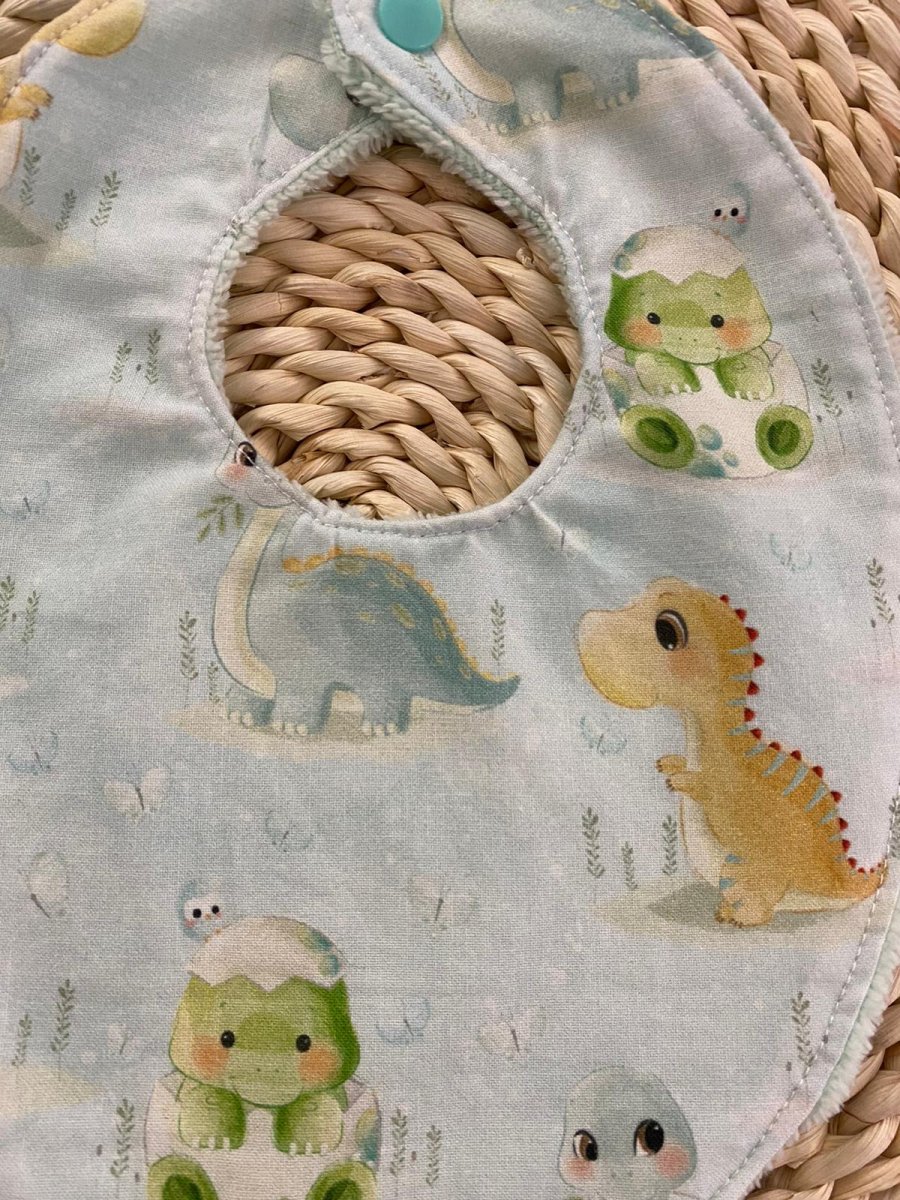 Bavetta a bandana in cotone e bamboo con stampa dinosauri verdi