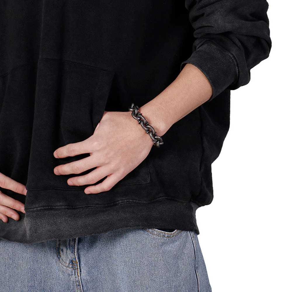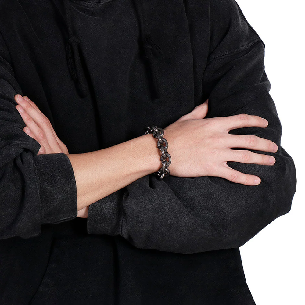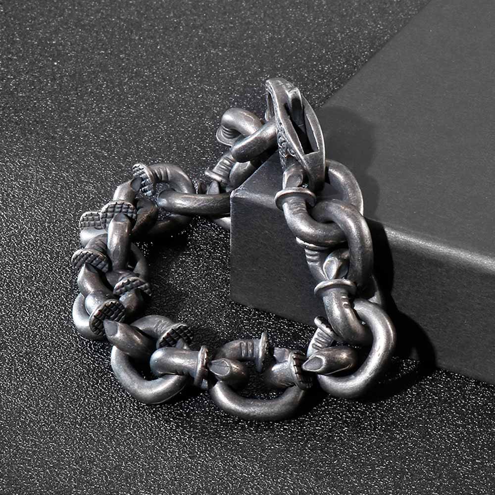 Introducing the mesmerizing Bent Nail Link Bracelet, where every individual link showcases an exquisite steel replica of a meticulously bent nail. Crafted with utmost precision, this extraordinary bracelet is forged using top-grade 316L stainless steel, ensuring its remarkable durability and resilience. Embrace the freedom to wear it without worry, as it is not only waterproof but also impervious to tarnishing, making it a timeless piece that will shine through any occasion. Moreover, its hypoallergenic nature guarantees a comfortable and irritation-free experience for all.