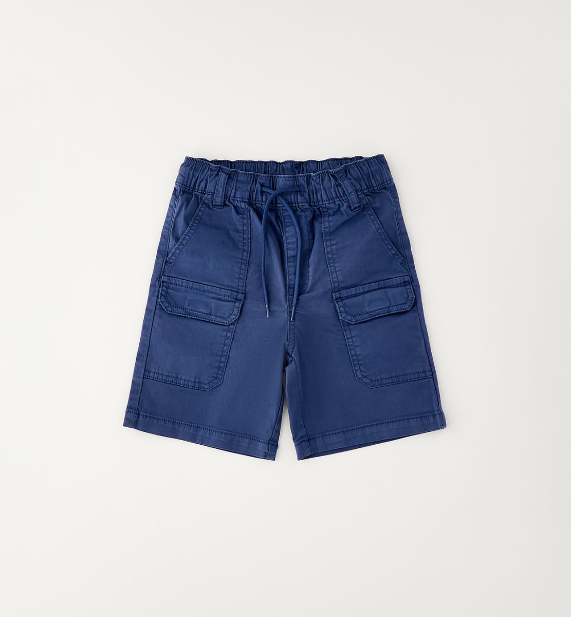 Bermuda in tessuto navetta colore blu modello cargo con coulisse.