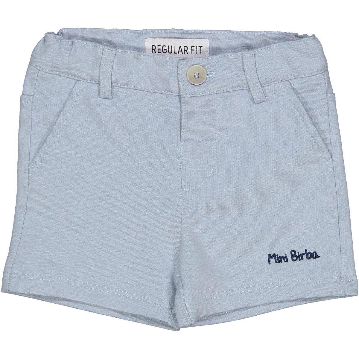 Bermuda in cotone colore celeste polvere con bottoncino e tasche a filo