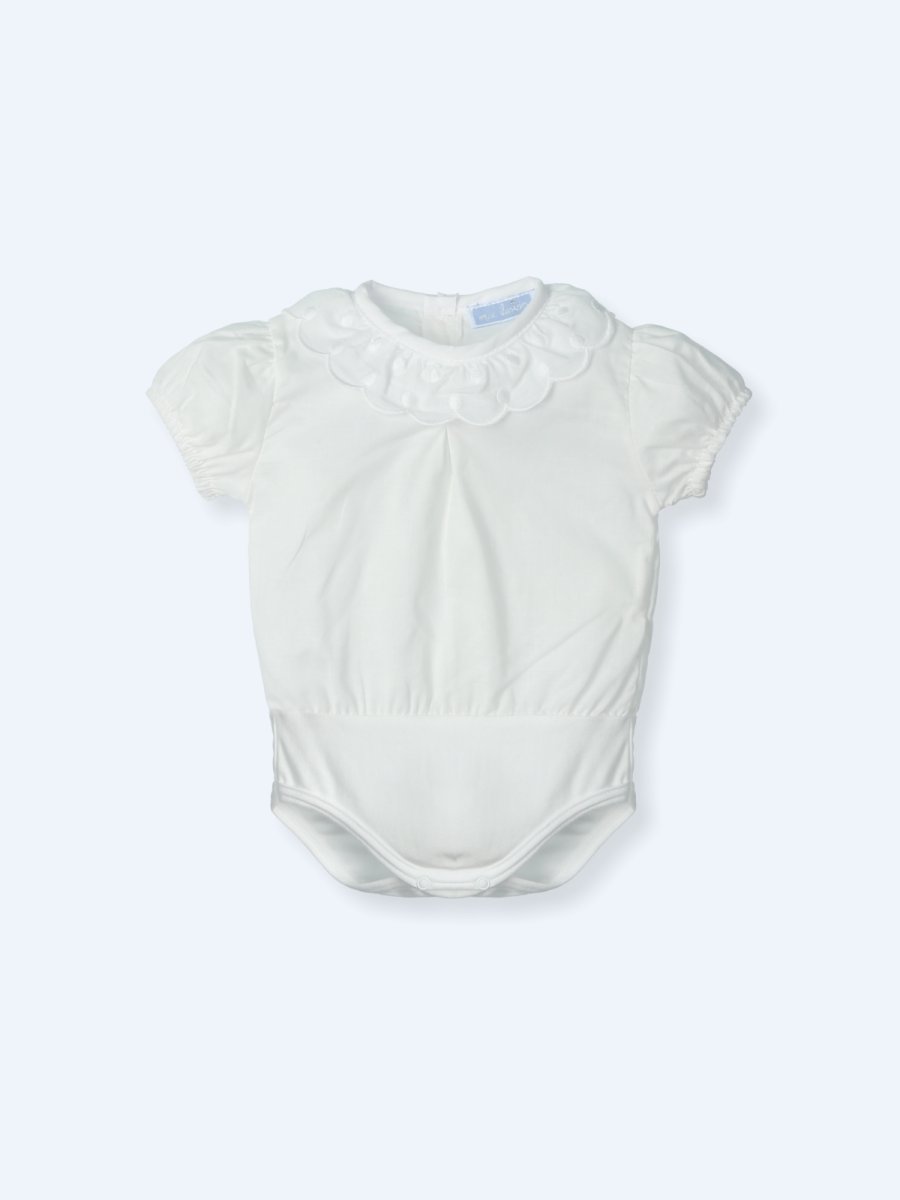 Body bianco in cotone con colletto a pois