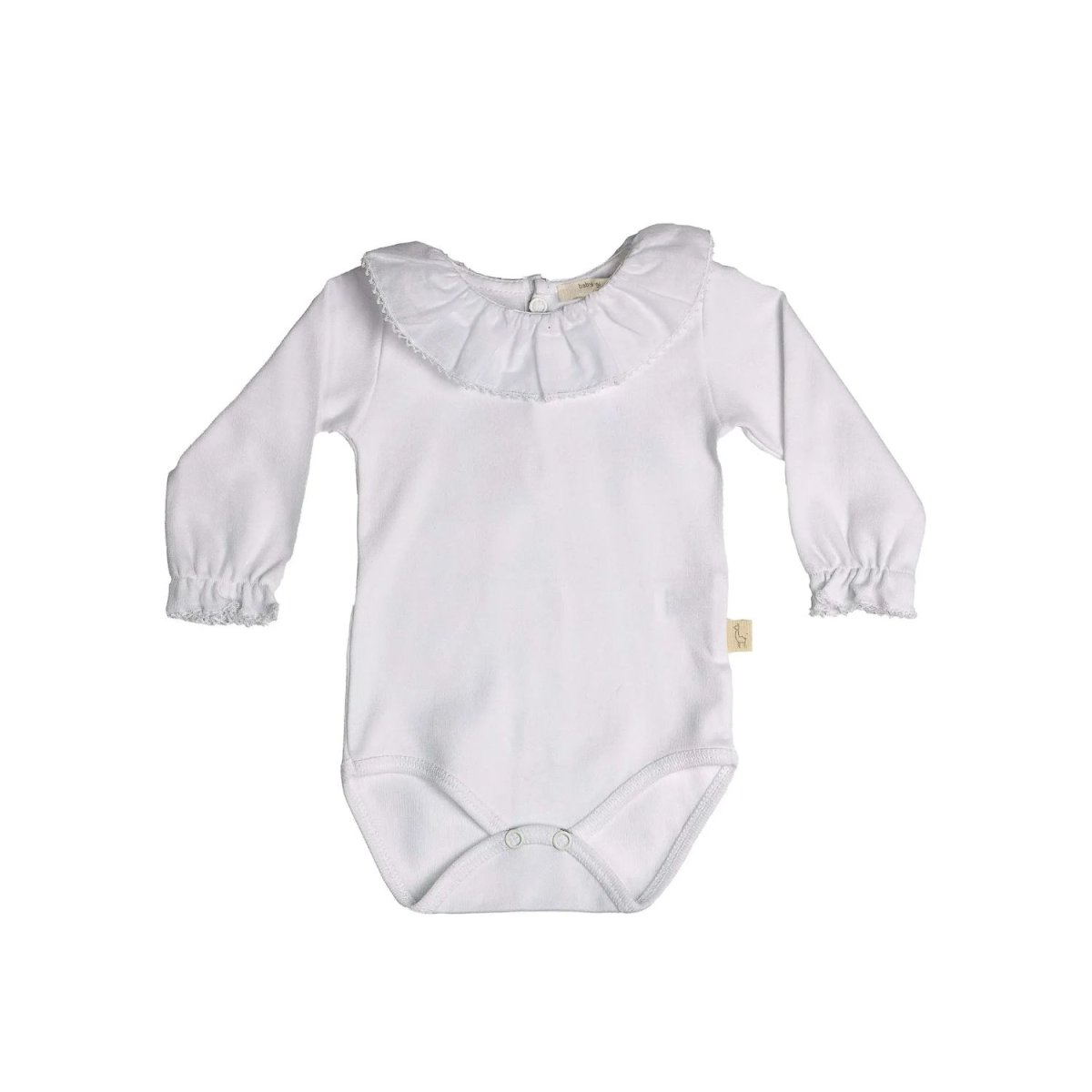 Body in cotone a manica lunga colore bianco con colletto a ruches