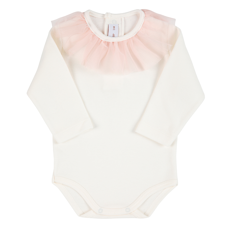 Body in caldo cotone colore panna con colletto in tulle rosa antico