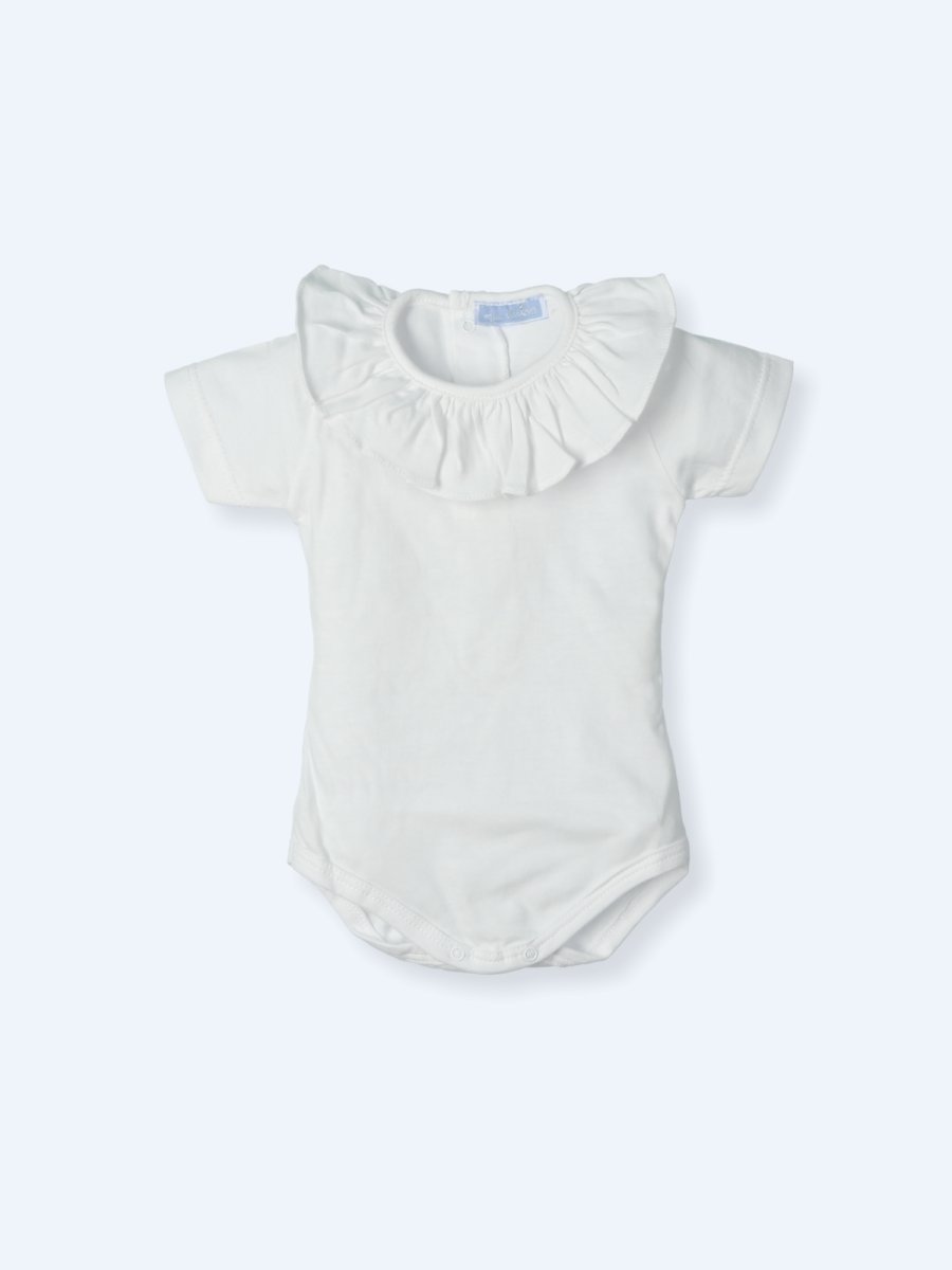 Body in cotone a manica corta colore bianco con colletto a ruches