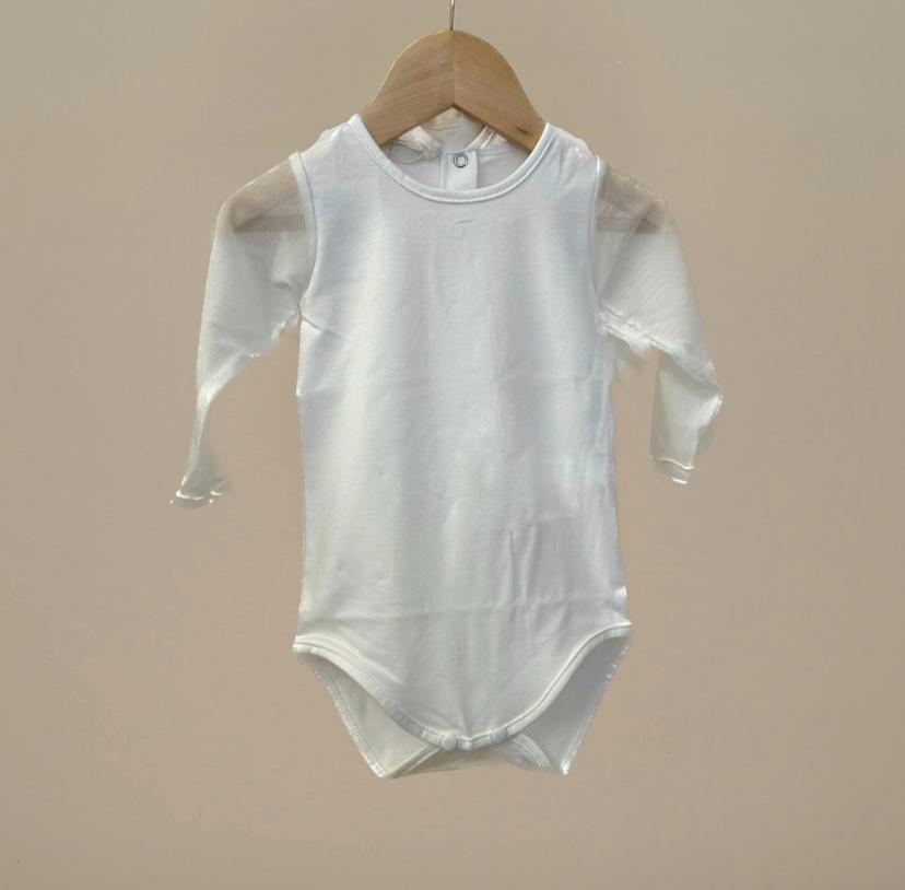 Body in cotone, colore bianco, con maniche in tulle