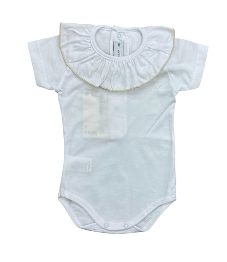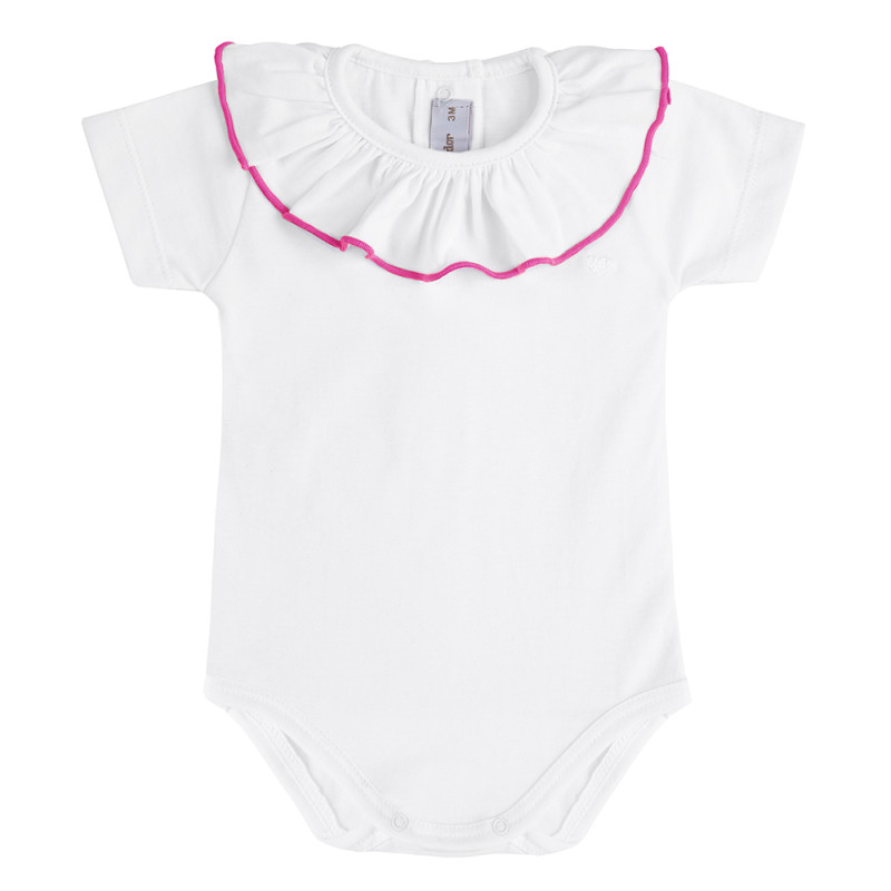 Body in cotone a mezza manica con rouche e ricamo cuoricino bianco sulla parte sinistra