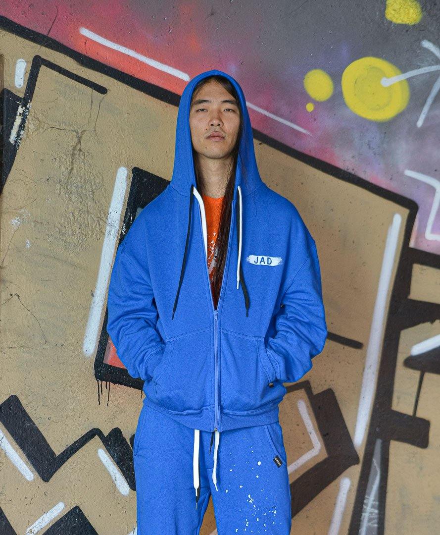 Chiusura full zip Tasche esterne Modello bomber over Logo JAD hand painted 100% Cotone garzato Made in Italy