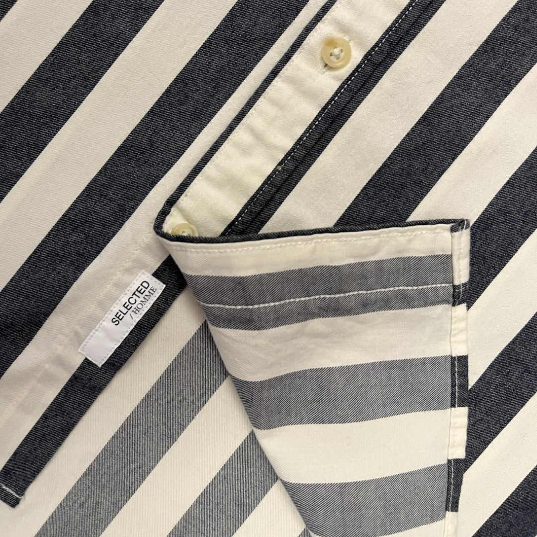 Camicia a riga larga blu e bianca