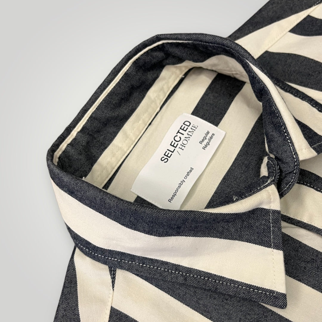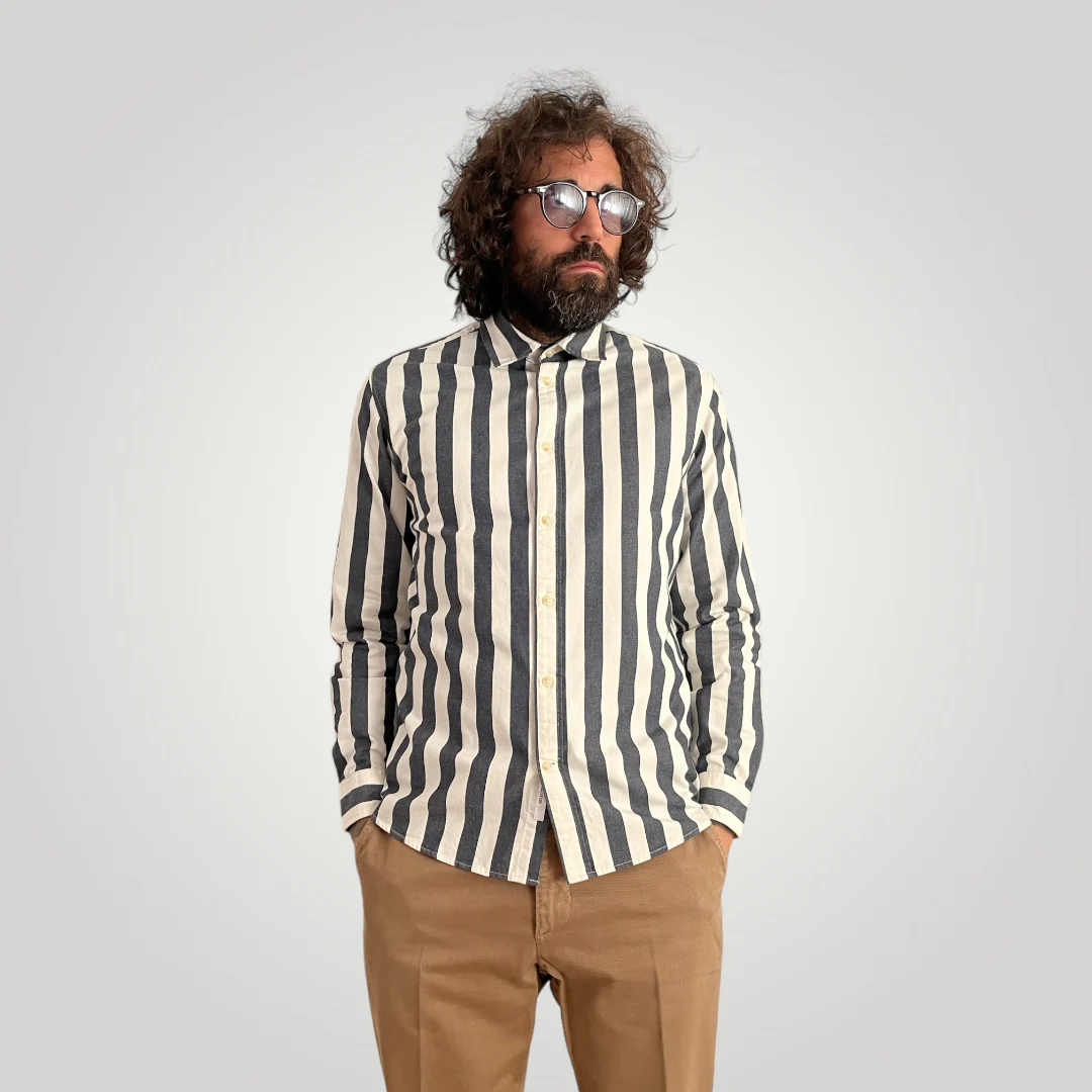 Camicia a righe blu e bianche