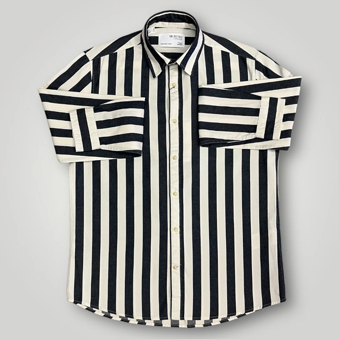 Camicia a riga larga blu e bianca 100% Cotone