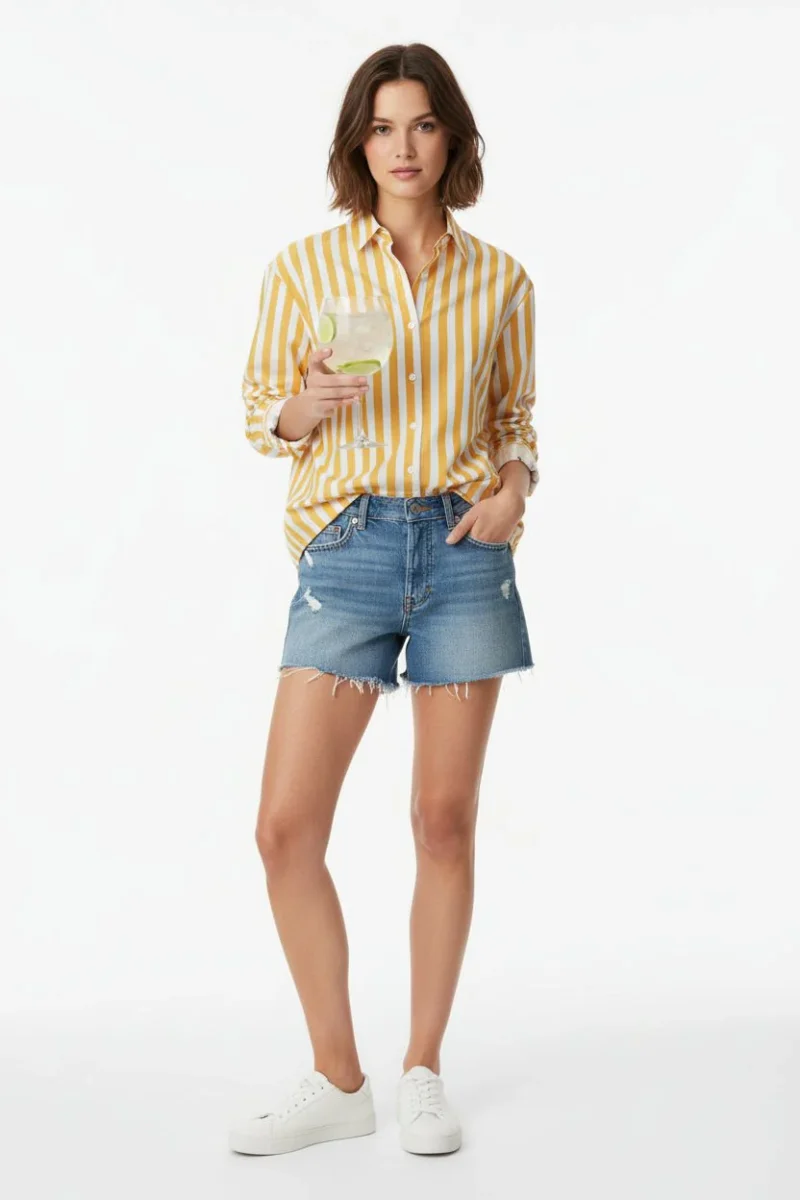 La nostra camicia Brigitte dal taglio rilassato presenta una lunghezza maggiore rispetto alla vestibilitร classica, offrendo piรน spazio su petto e vita. Perfetta per l’estate, puรฒ essere indossata da sola come copricostume o mini-abito, oppure abbinata a shorts, jeans, pantaloni o mini-gonne. La lunghezza varia di 1 cm per taglia e la lunghezza delle maniche […]