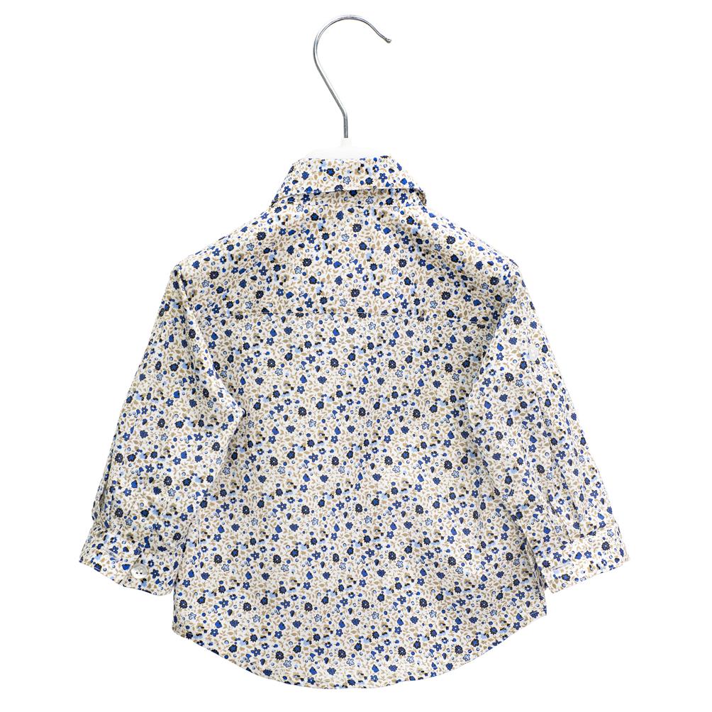 Camicia in cotone fondo bianco con stampa fiorellini blu