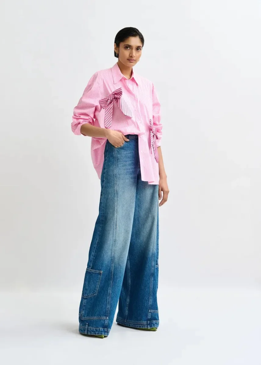 Camicia Jiwi oversize rosa a righe con fiocchi