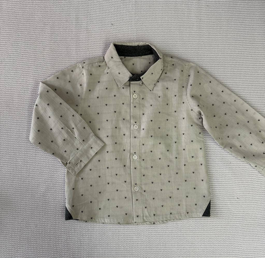Camicia in cotone millerighe grigie bimbo con ricamo piccoli cuoricini