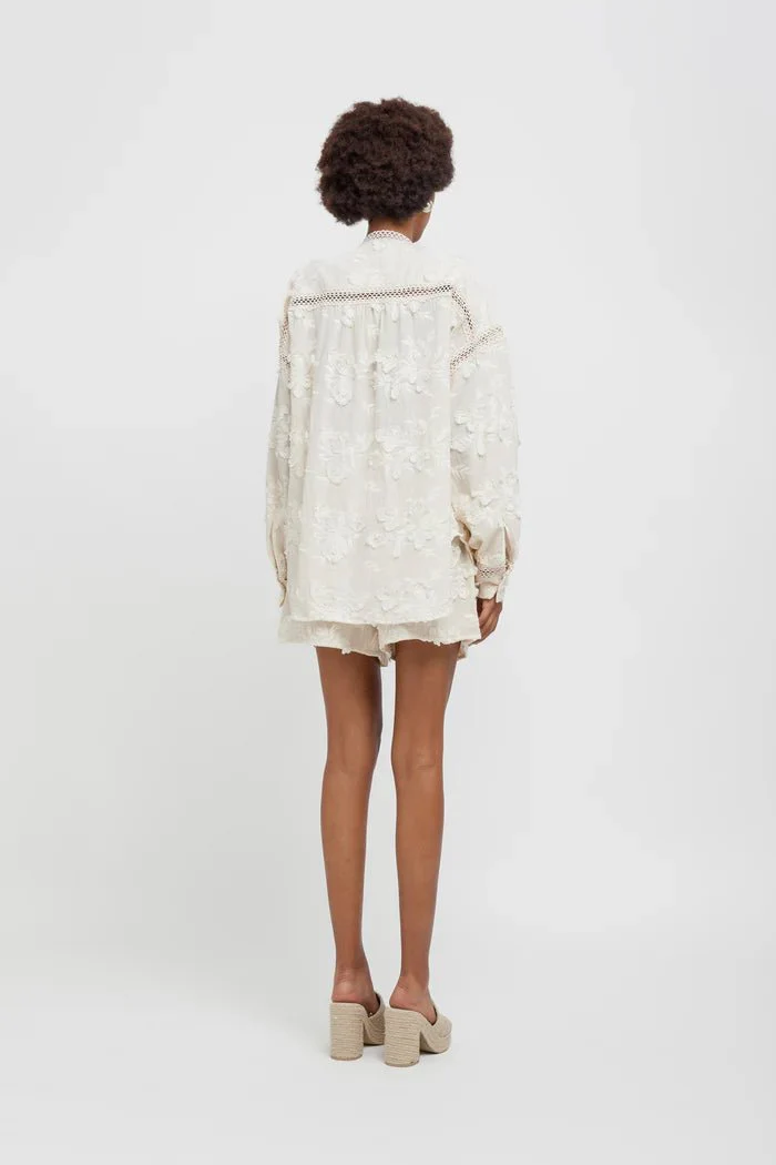 Camicia ovesize in mussola ricamata crema
