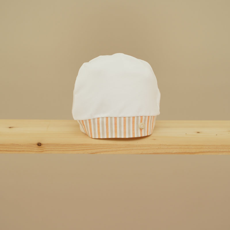 Cappellino in cotone panna con righe arancioni e beige