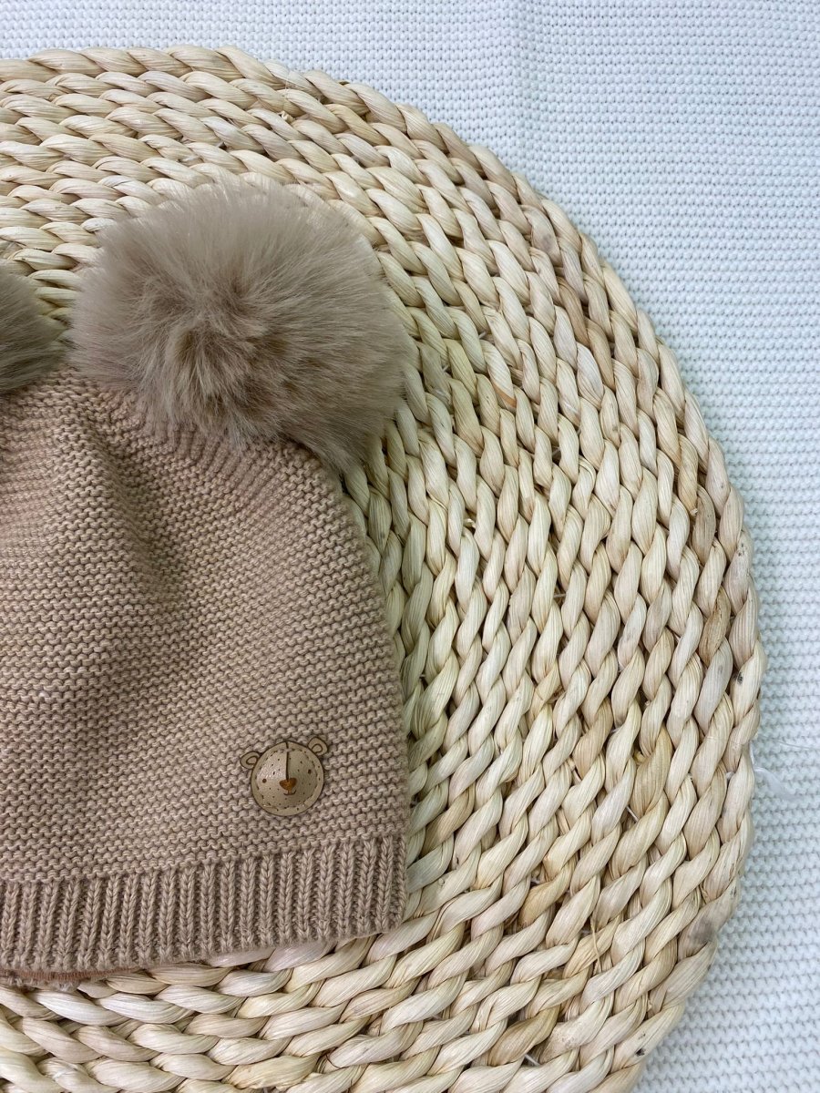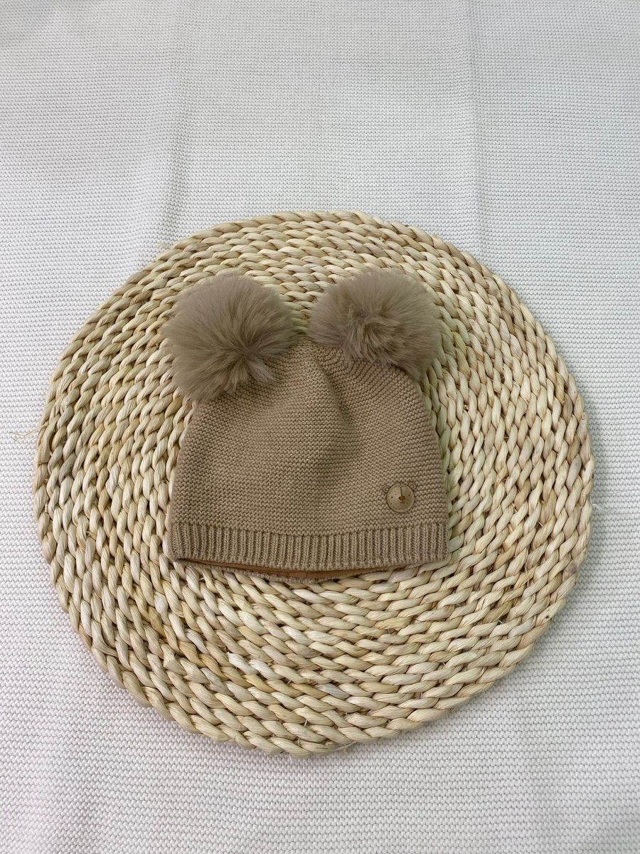 Cappellino Jamiks colore beige in misto lana con orecchie pom pom pelliccia. Foderato internamente.