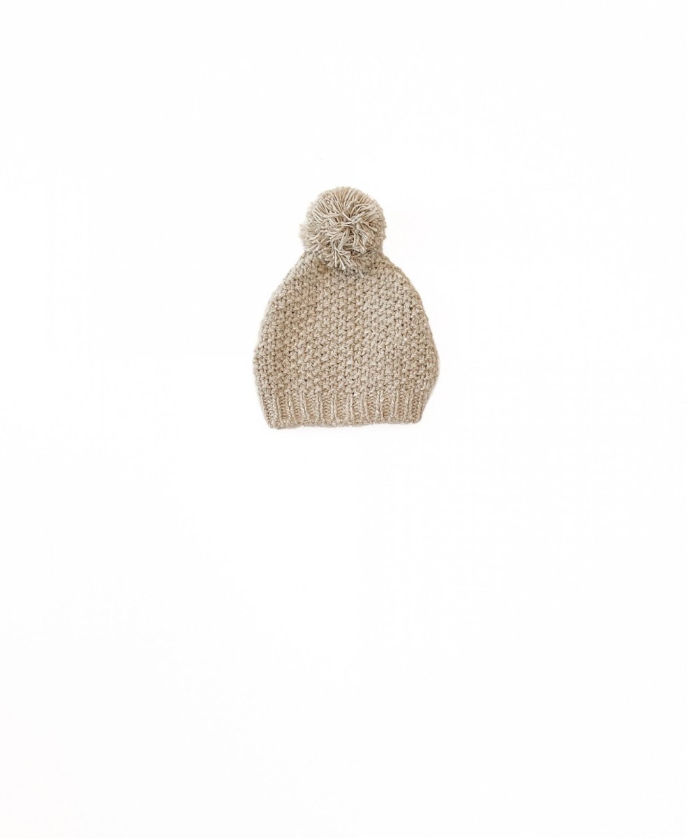 Cappellino in lana riciclata colore beige melange con pom pom