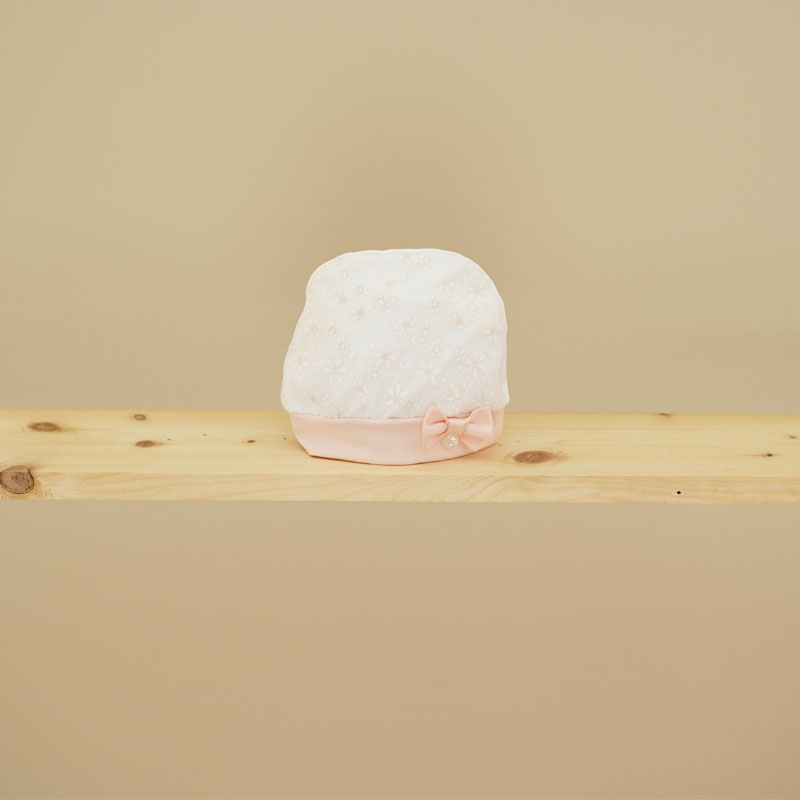 Cappellino bianco e pesco con fiocco Ninnaoh
