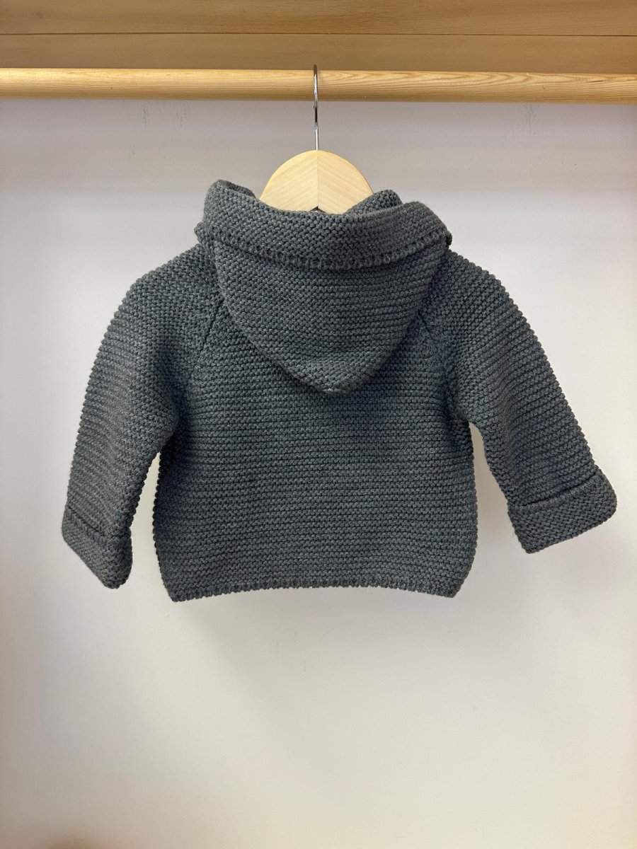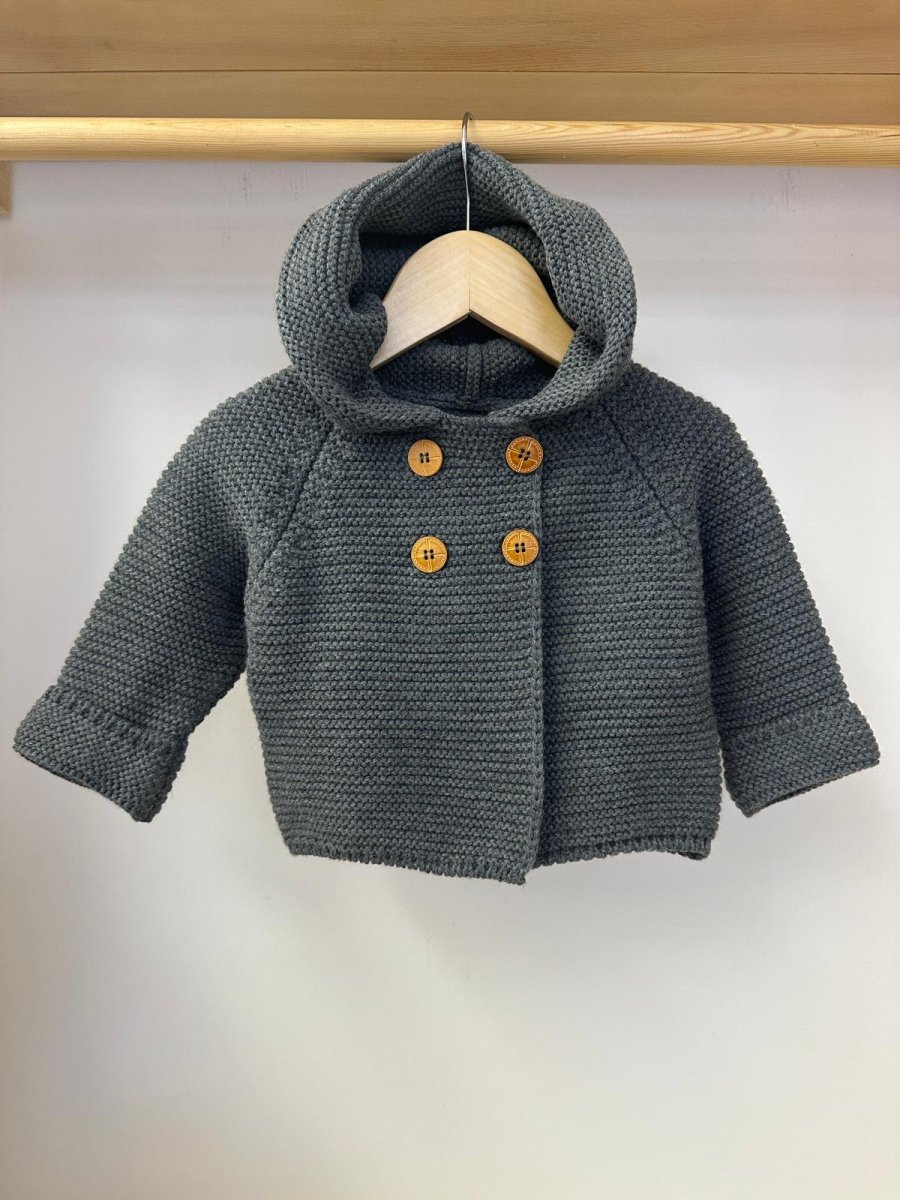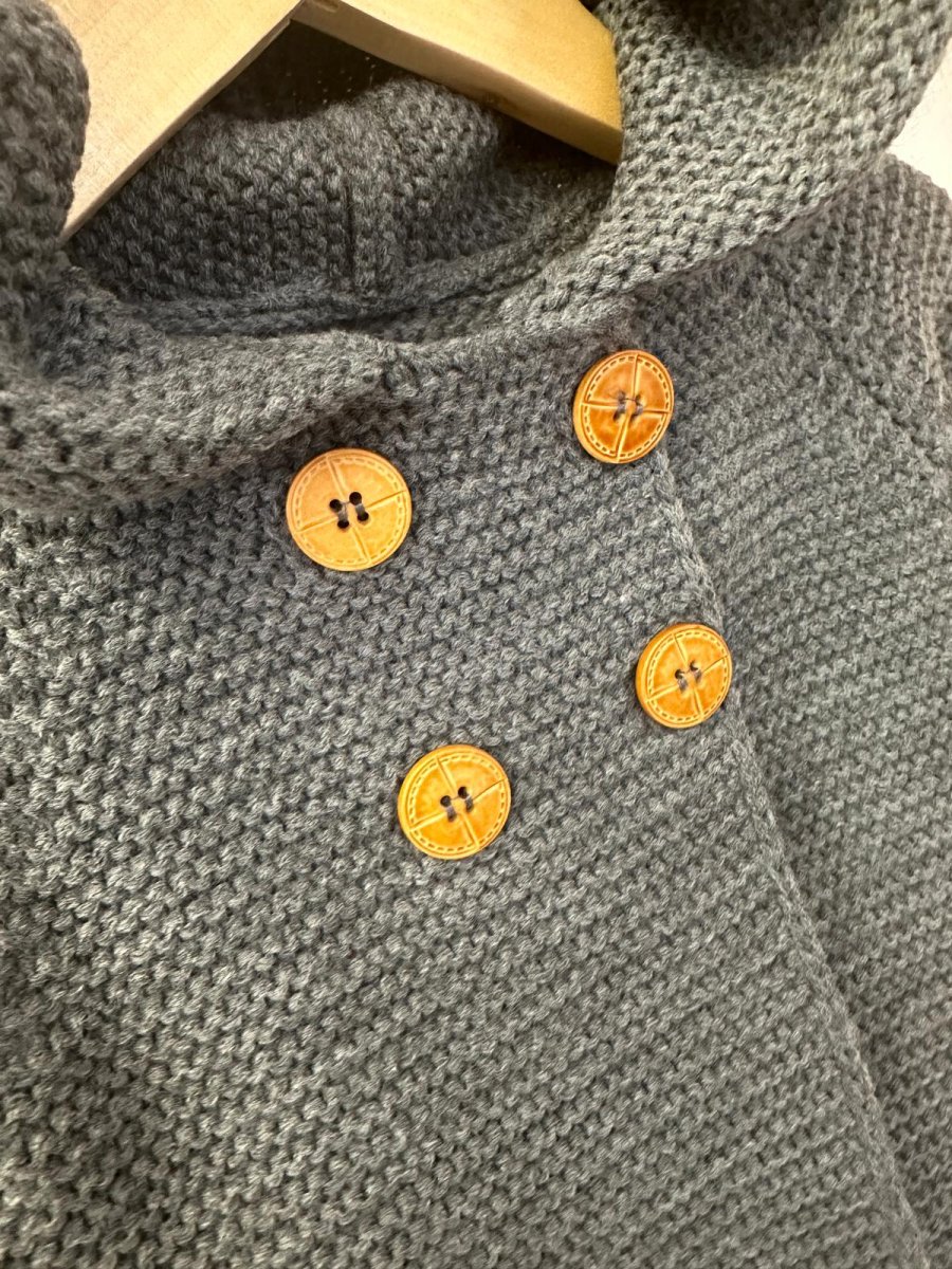 Cappottino in misto lana, chiusura a doppiopetto, bottoncini marroni, con cappuccio, colore grigio