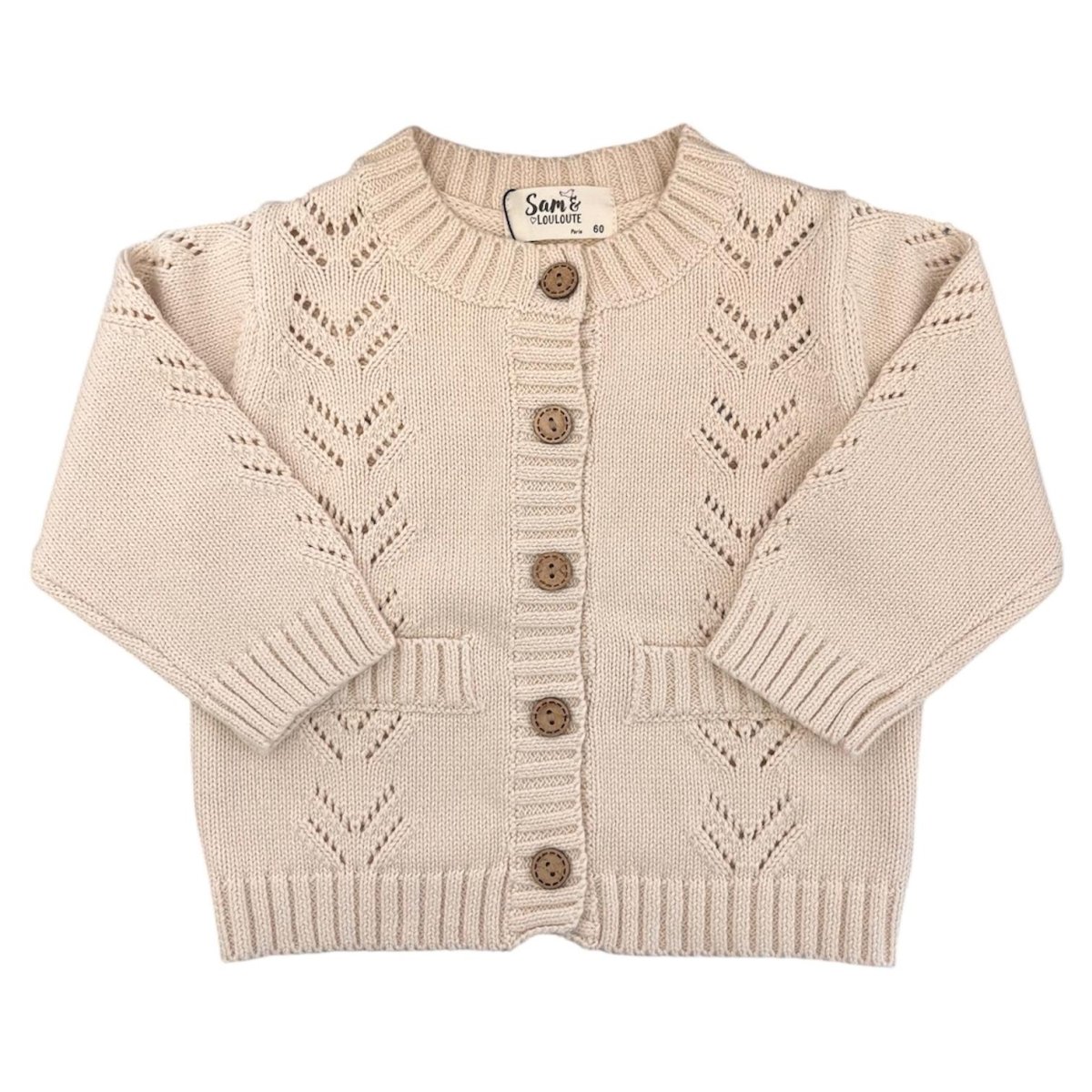 Cardigan beige traforato con tasche finte Sam & Louloute 100% cotone