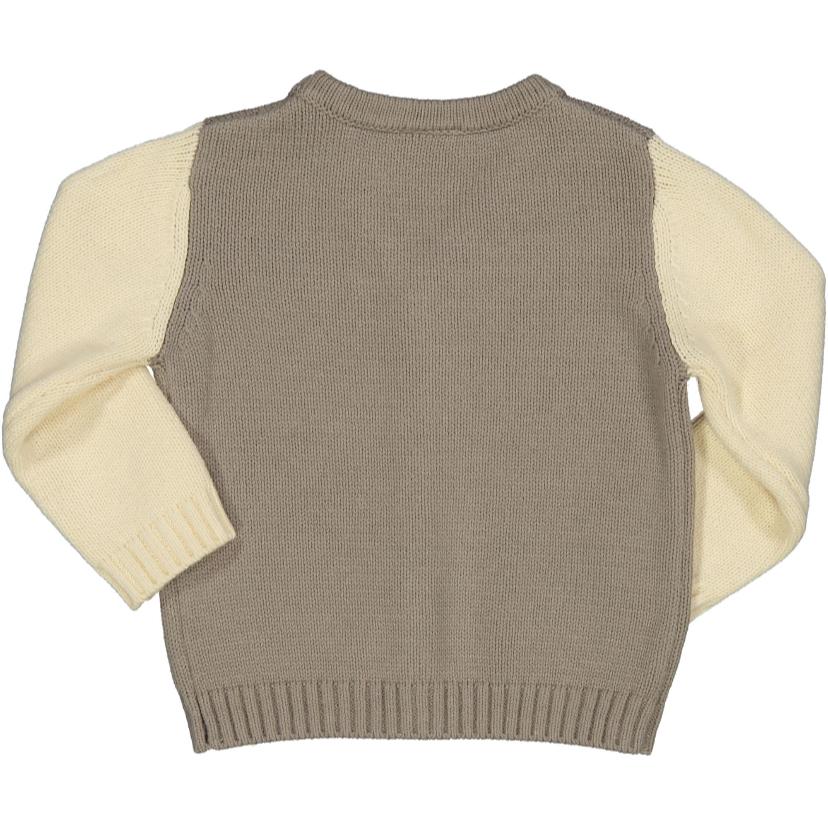 Cardigan color panna e beige con chiusura bottoni e scritta ricamata e applicazione numero