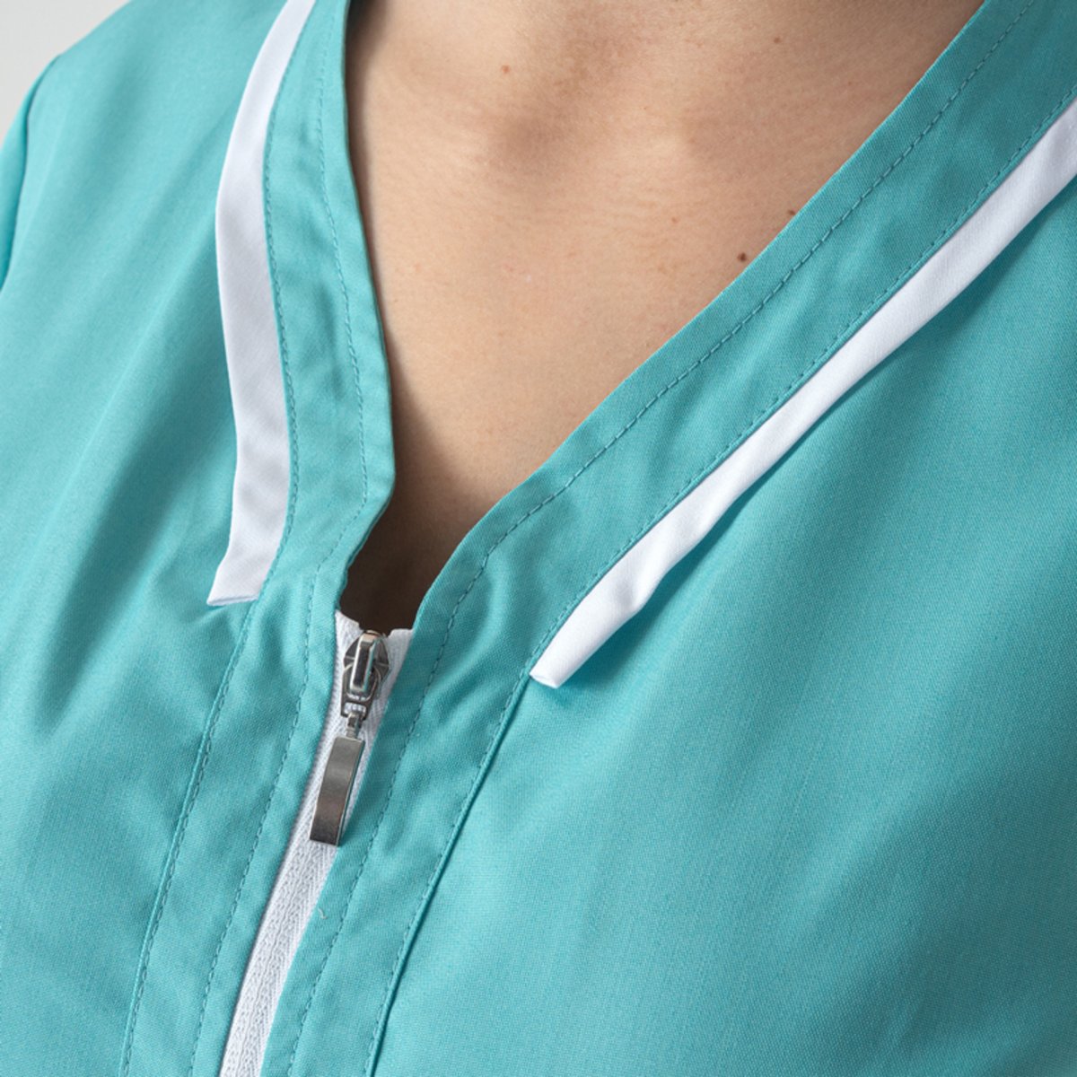 La casacca Altea รจ un capo estremamente versatile e ben si presta a molteplici contesti, siano essi Ho.Re.Ca. Wellness, ambito scolastico Maestre e Personale di servizio. ร realizzata in un leggero policotone nel colorato, puro cotone nel bianco, presenta una vestibilitร Slim Fit e unโabbottonatura centrale con zip divisibile e cursore metallico rovesciato anti urto. Nella scollatura e nelle tasche uno sbieco bianco caratterizza il capo, pronunciandone il disegno. Il tessuto รจ resistente alle alte temperature ed รจ candeggiabile Scheda tecnica: TAGLIE e LAVAGGI > Altea colorata ย ย Altea bianca