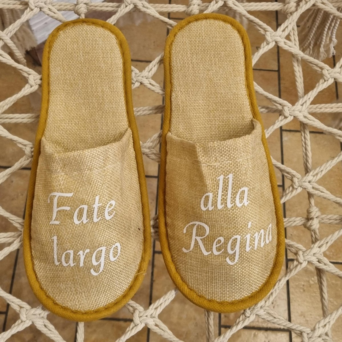 1 paio di ciabatte molto leggere per interno, con la scritta stampata, disponibili in vari colori.