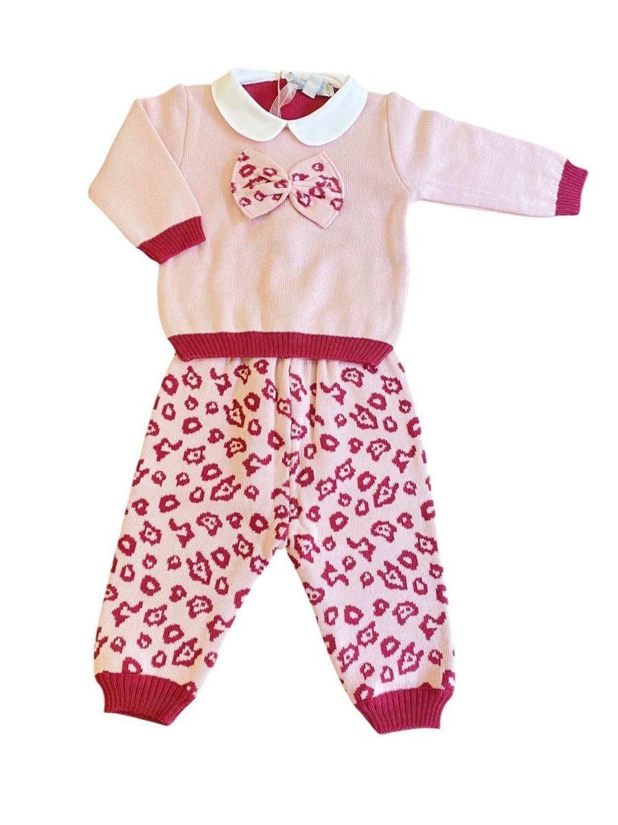 Completo 2 pezzi in pura lana (100%) colore rosa con fantasia maculata e color vinaccio