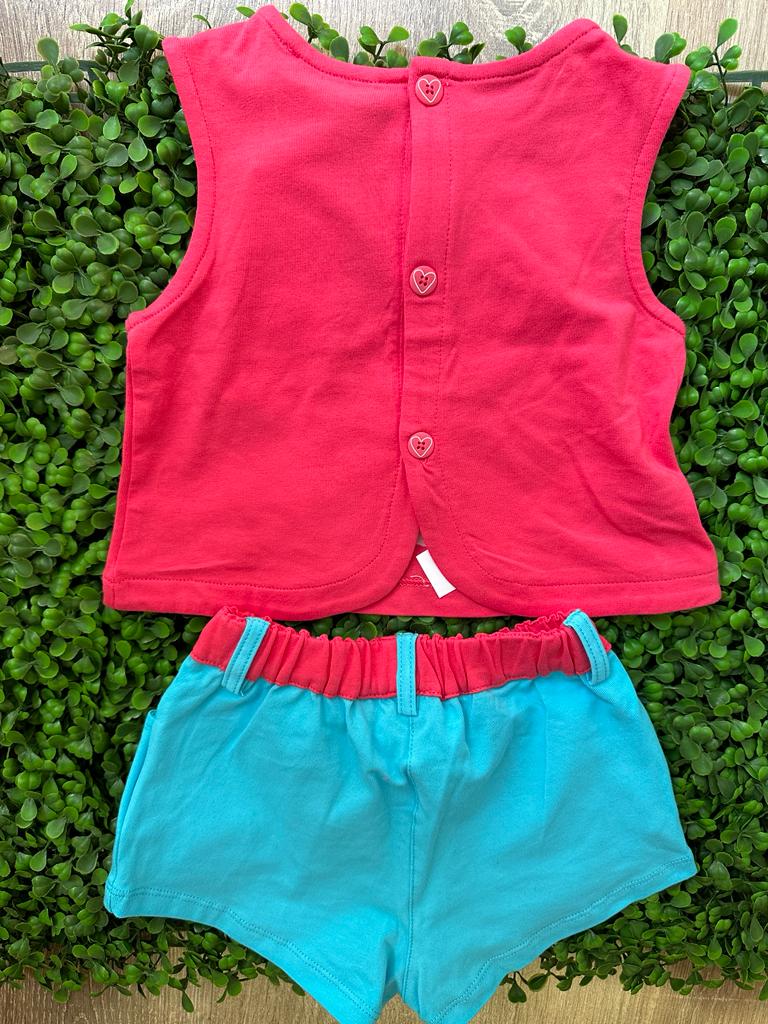 Completo unicorno in cotone due pezzi maglia a giro con bottoncini sulla parte posteriore e pantaloncino con cinturina