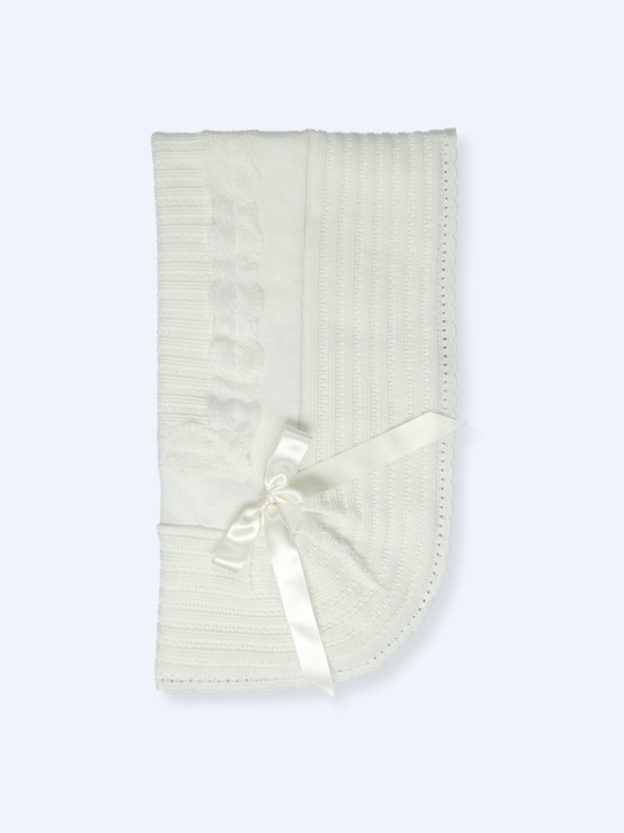 Copertina color panna ricamata con fiocco in raso