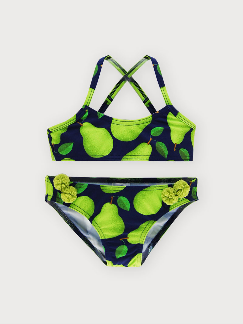 Costume due pezzi Sardon blu e giallo dettaglio pon pon mutandina