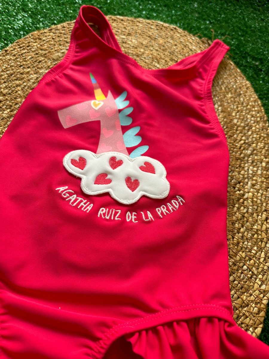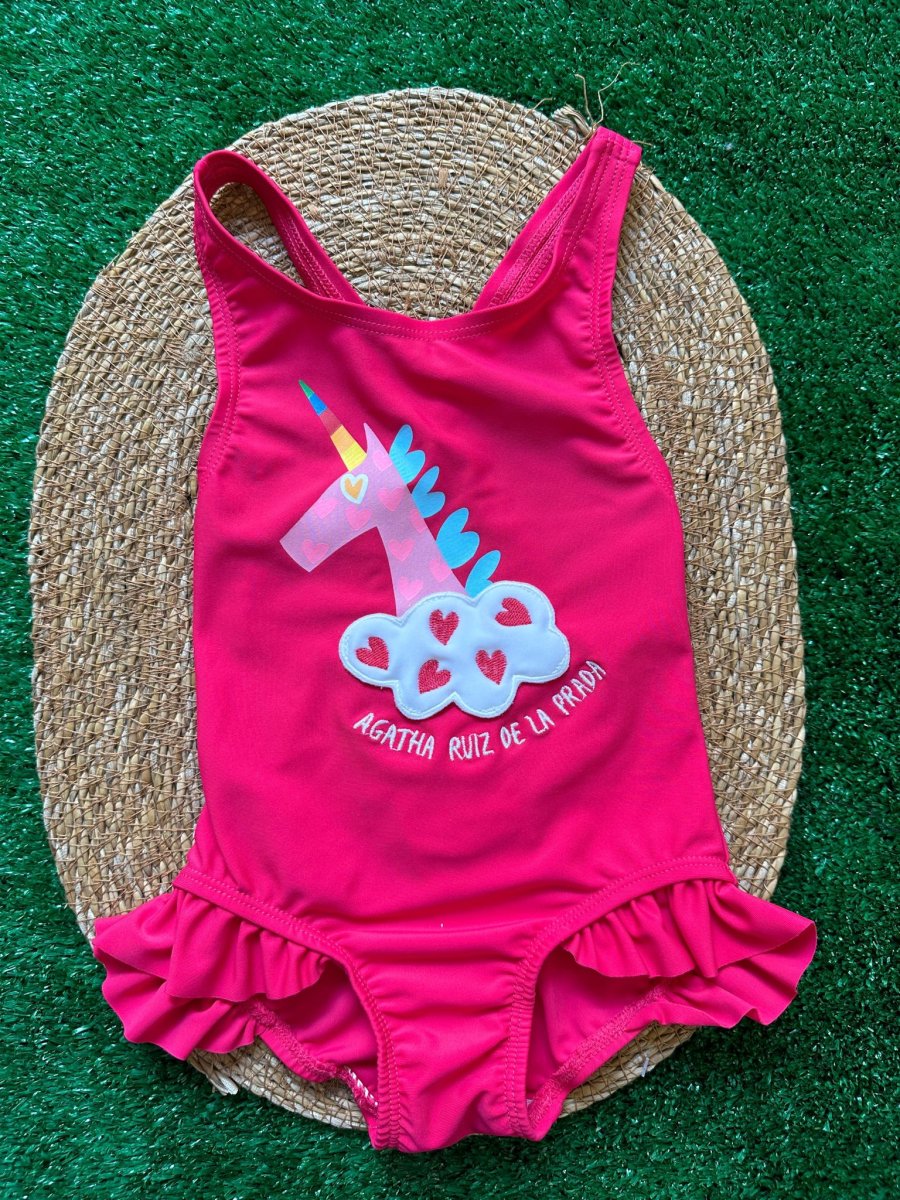 Costume intero Agatha Ruiz de La Prada fuxia con disegno unicorno