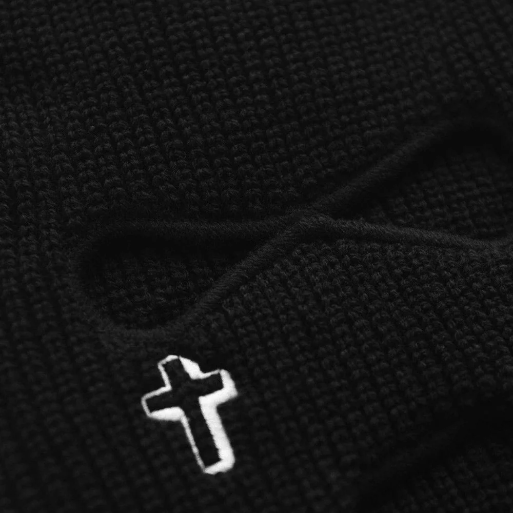 This Cross Balaclava is made out of a thick knit material that is guaranteed to keep your face and head warm during your wild winter adventures. The three-hole embroidered ski mask features two separate eyeholes and a mouth hole.