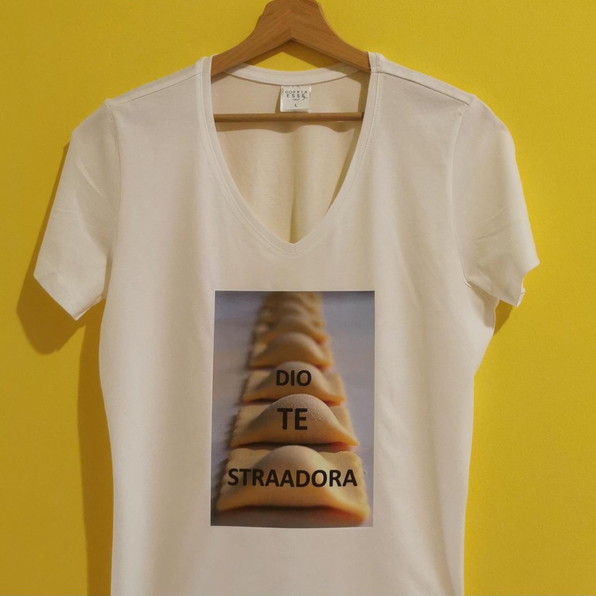 La T-shirt “DIO TE STRADORA” rappresenta a pieno il nostro concetto di WEAR POSITIVE – VESTIRE POSITIVO.