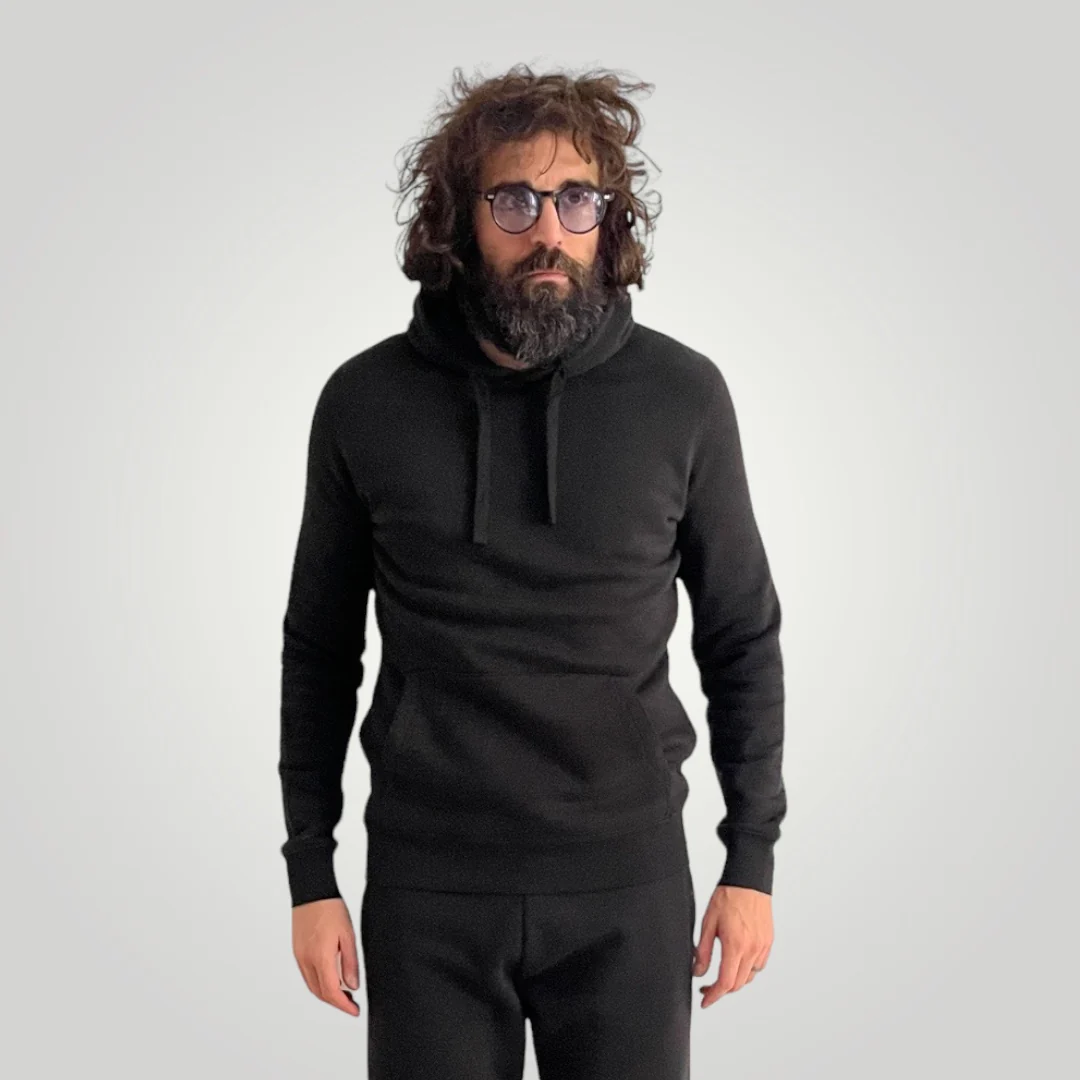 Felpa cappuccio nera 80% Cotone 20% Poliestere