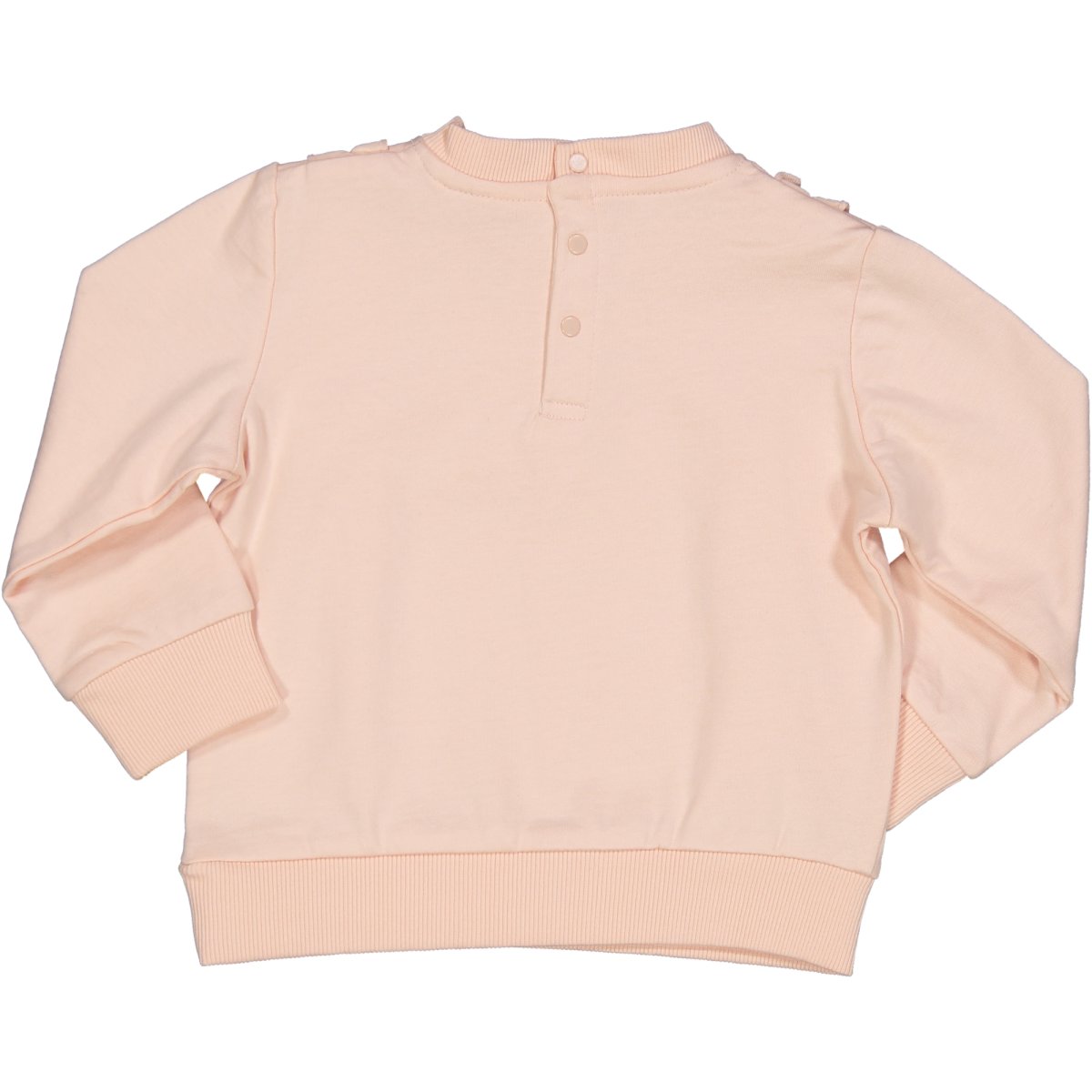 Felpa smerlata, in caldo cotone, rosa, ruches sulla parte anteriore e chiusura bottoncini sulla parte posteriore.