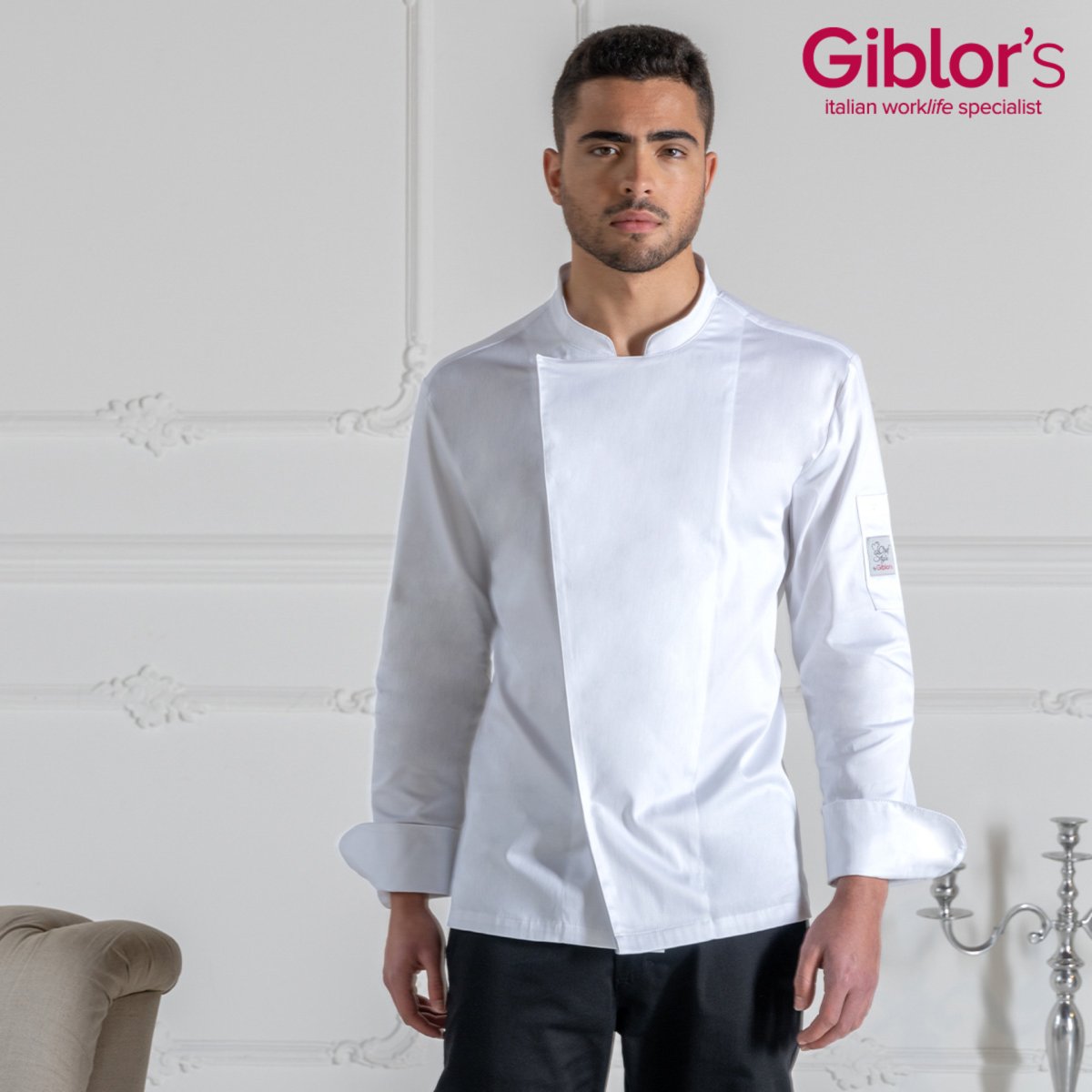 La giacca Augustin รจ un capo di punta della collezione Essential: realizzata in cotone elasticizzato, che facilita il movimento, ha una mano morbida, molto apprezzata dai clienti per la sensazione di confort quando indossata. Presenta una vestibilitร  Slim Fit, caratterizzata da due tagli sagomati sul retro, un porta penne sulla manica sinistra e il collo classico coreano, seguito dallโ€™abbottonatura doppio petto con automatici nascosti. Augustin รจ proposta nei colori bianco e nero ed ha la sua variante femminile nella giacca Celine. Scheda tecnica: TAGLIE e LAVAGGI > Augustin