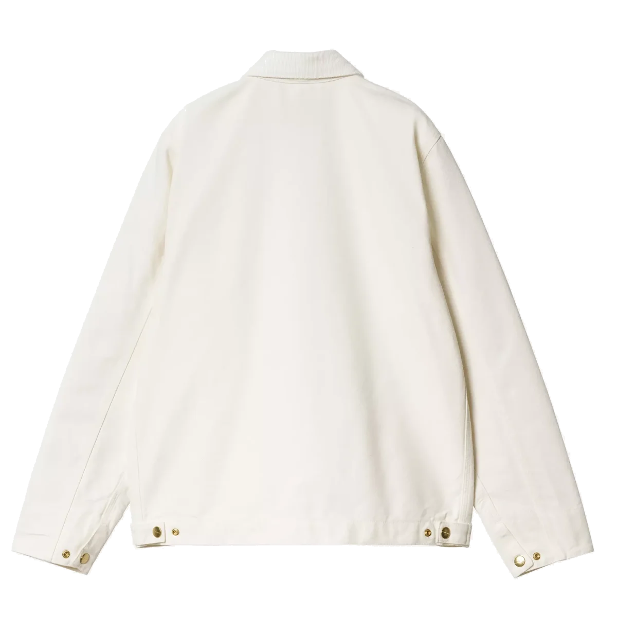 La Detroit Jacket รจ un modello non foderato realizzato in pesante tela Dearborn con colletto in velluto. La giacca รจ caratterizzata da chiusura anteriore con zip e polsini e orlo regolabili tramite bottoni automatici. Sul petto presenta unโetichetta quadrata in tessuto.